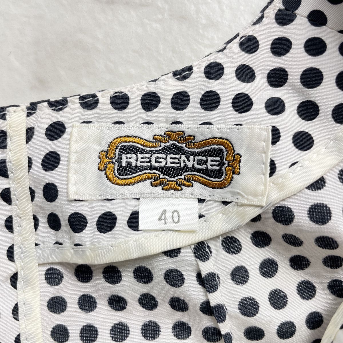 REGENCE レジァンス シルク混 バックボタン ドットコットンブラウス トップス レディース 白 黒 サイズ40*TC887