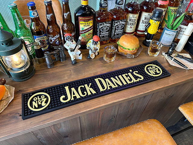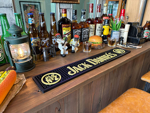 このバーマットをテーブルや木箱に敷けば、そこが粋なバーに変身ってヤツです。