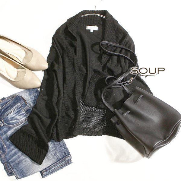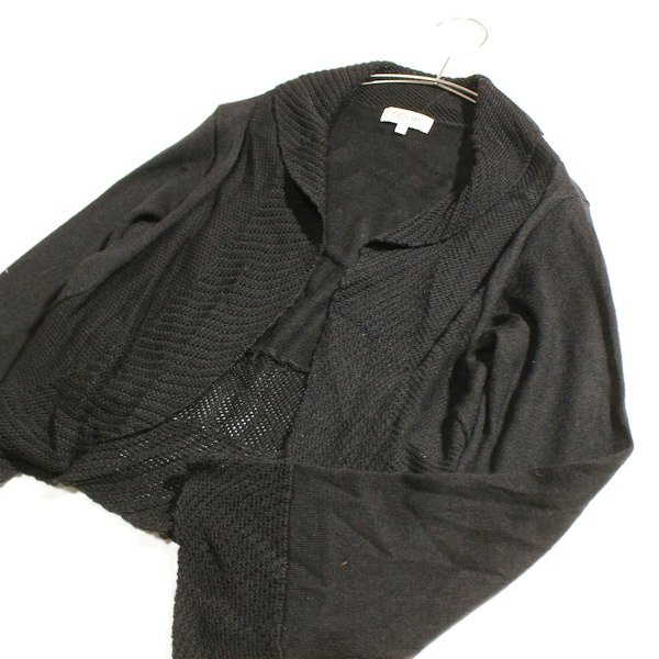 美品 (株)ワールド SOUP スープ 綺麗め ノーボタン ウール混紡 ニット カーディガン 9号 M 春 秋 合服 24B11