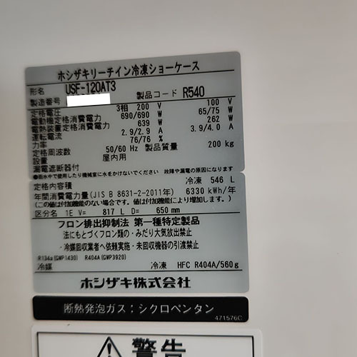【業界最長1年保証】冷凍リーチインショーケース ホシザキ USF-120AT3 業務用 中古/送料別途見積