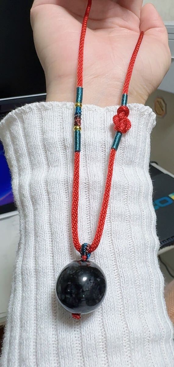 R2-0229 天然本翡翠《本物保証》 黒翡翠18mm 白黒翡翠 高品質 一点物 魔除け 昇進 成功 風水 金運 財運 幸運 幸福 縁起