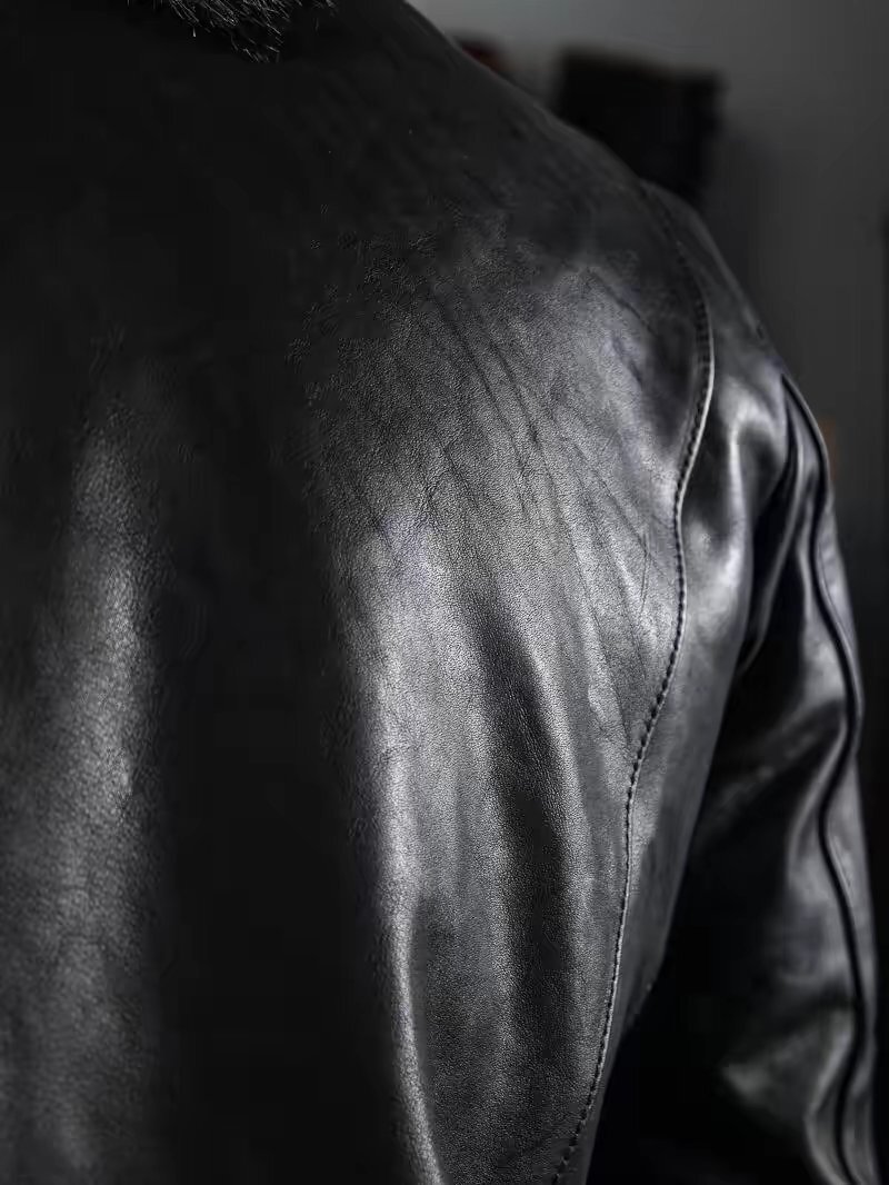 ベジタブルタンニン鞣しの厚みとコシのあるフルグレインレザーのカーフスキンで、銀面の美しいツヤは、着込めば着込むほどシボが浮かんでツヤが増し、シワが刻まれ立体的に変化します。