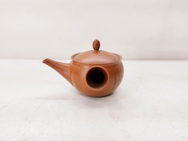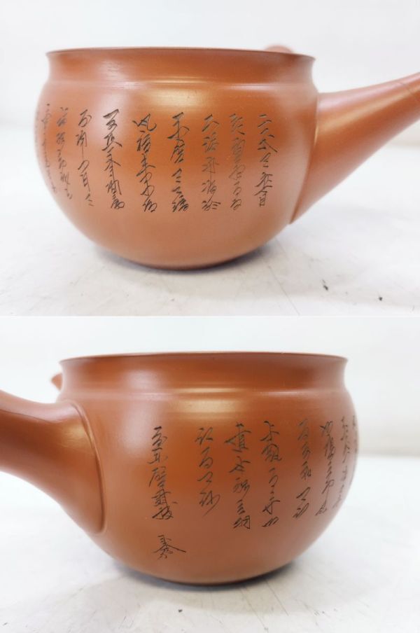 S/ 煎茶道具 常滑焼 高資 細密彫刻 漢詩 朱泥 急須 / NY-1909