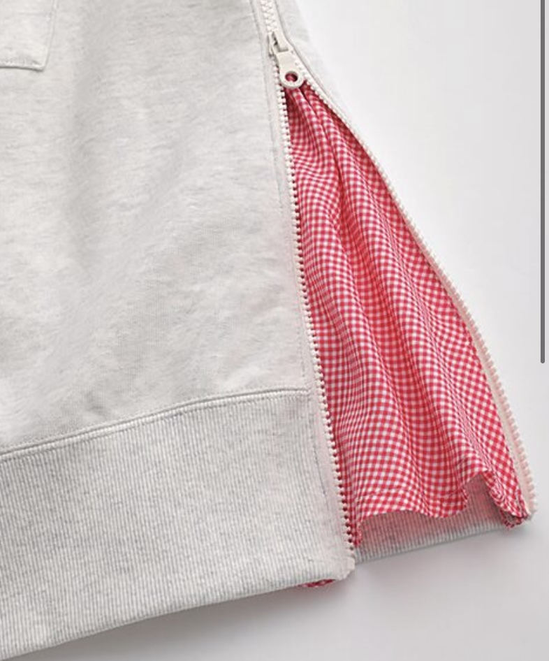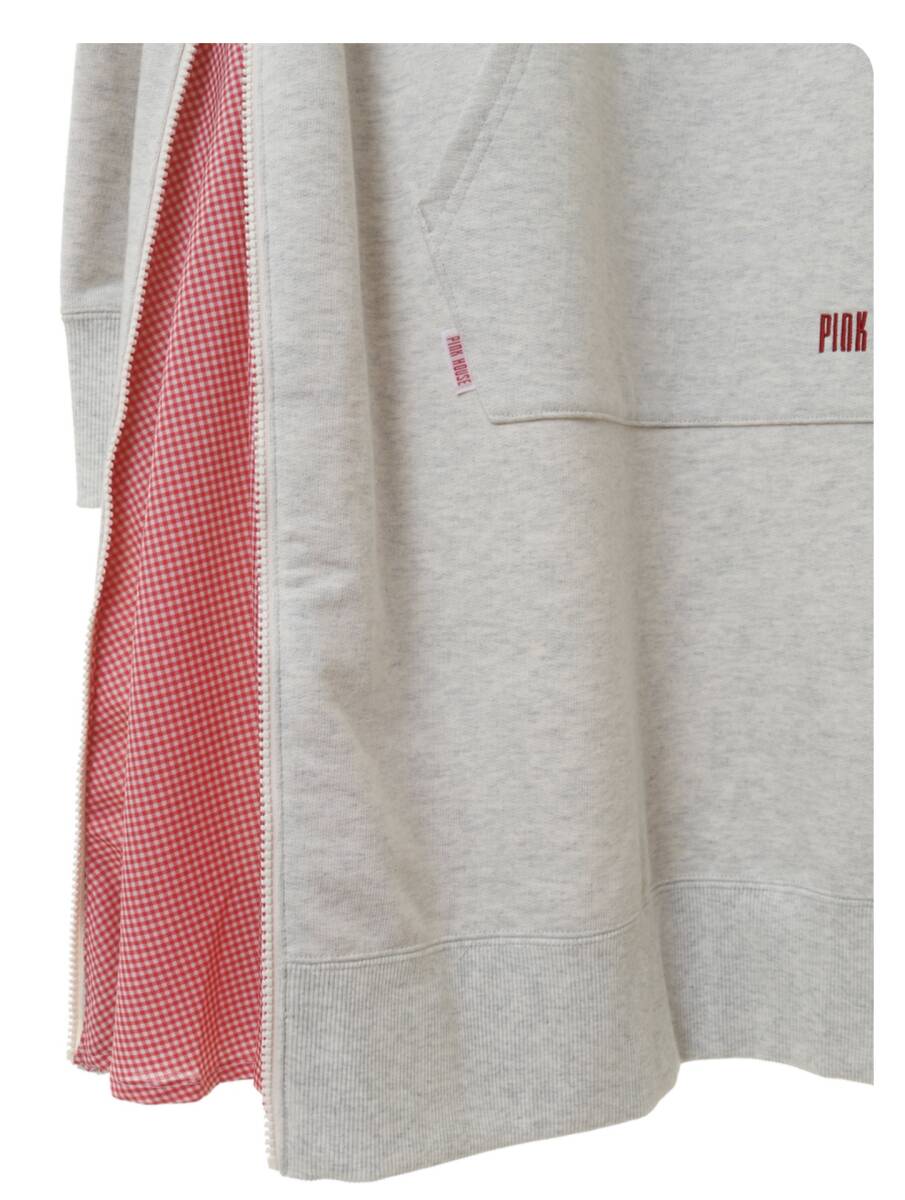 ファスナーを開けてギンガムをのぞかせる着こなしも、ファスナーを閉めてそのままシンプルなフードワンピースとしてもお楽しみいただける1枚で2通りの着こなしがお楽しみいただけます。