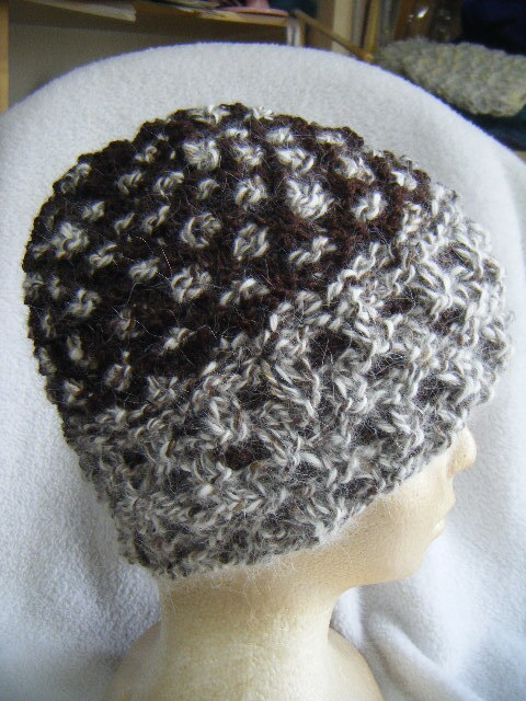 冬*手編み男女兼用キャップ*白、こげ茶他*フランス糸他       はハ