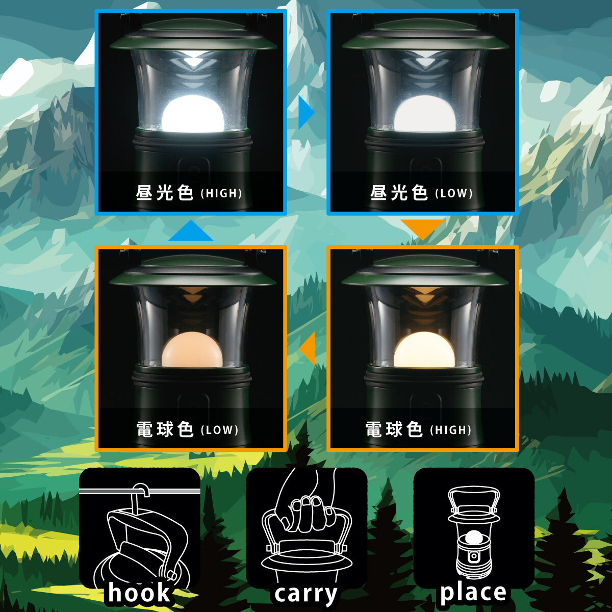・ 電球色(HIGH)モード…約300時間、電球色(LOW)モード…約900時間