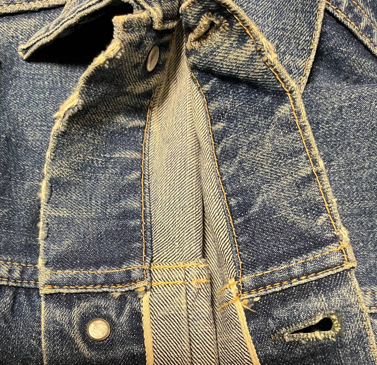 襟破れ、各所糸ほつれ、各所スレ・破れ・汚れあり。ディテールや状態等、画像にて判断願います。ビンテージ古着です。ビンテージ、アンティーク、古着に理解のある方、ノークレームノーリターンでよろしくお願いいたします。