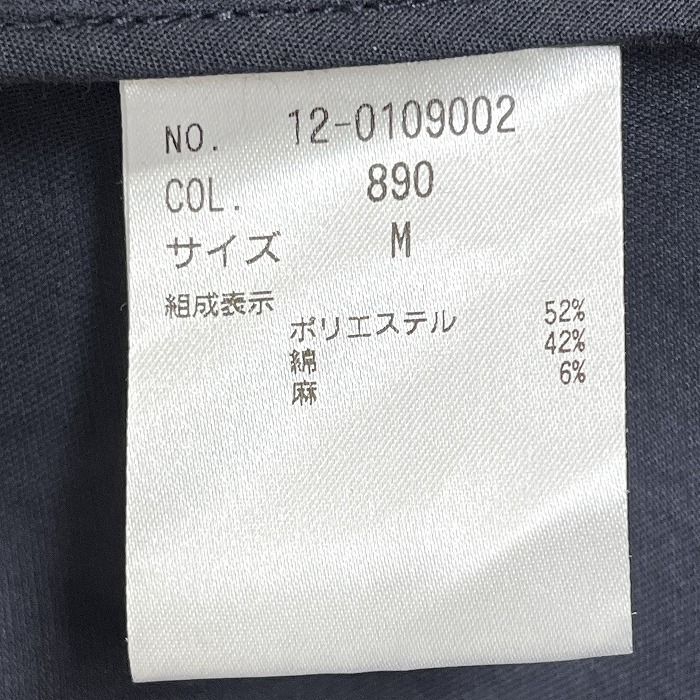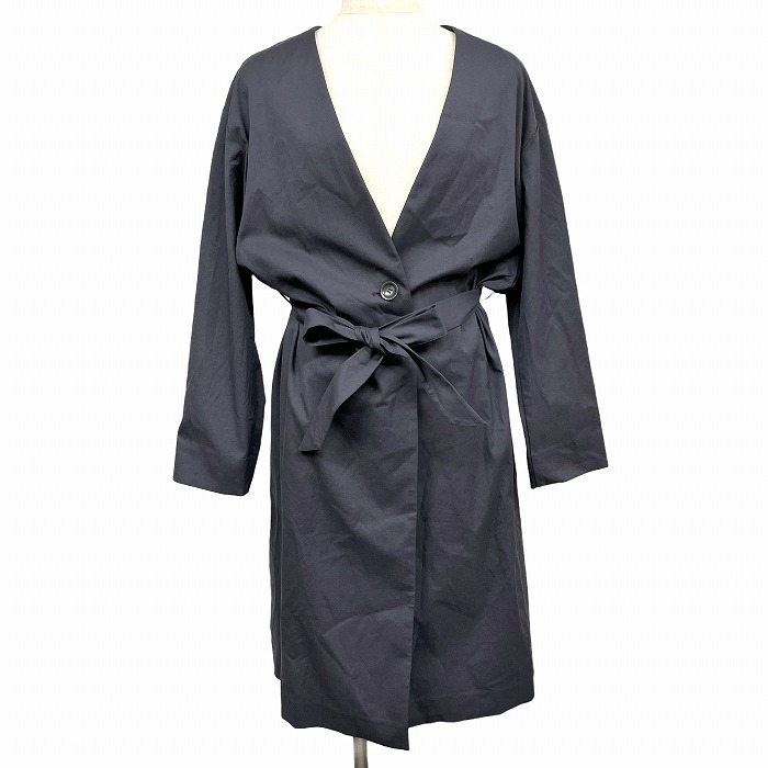 | 商品タイトル | プラステ PLST 少し薄手 コート 裏地無し Vネック 1つボタン留め 無地 長袖 裾の両側にスリット ポリ×綿×麻 M ネイビー 紺 レディース |