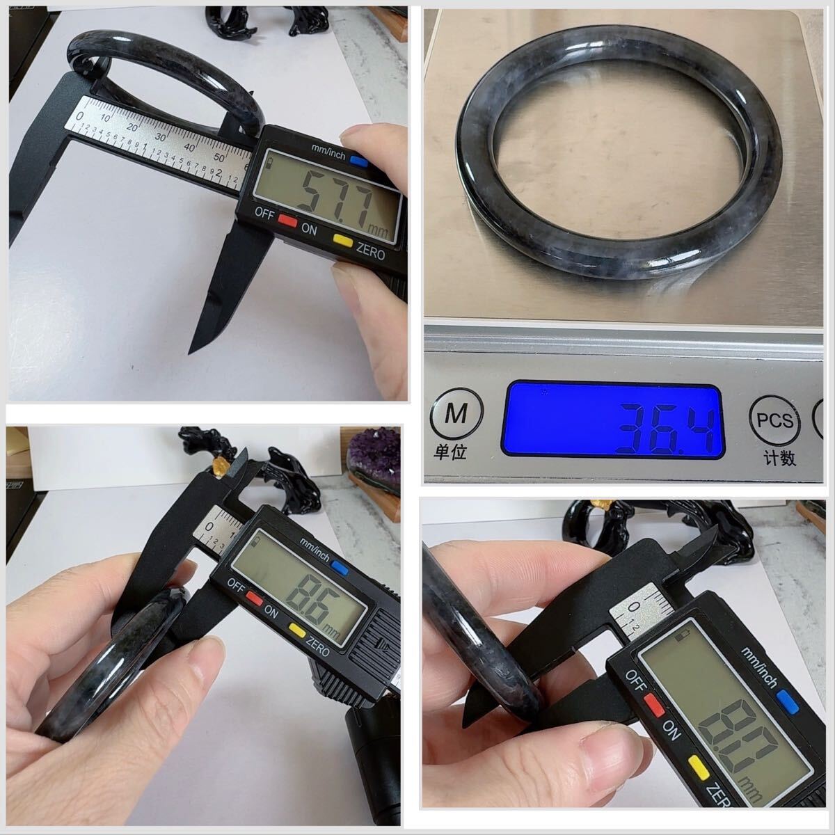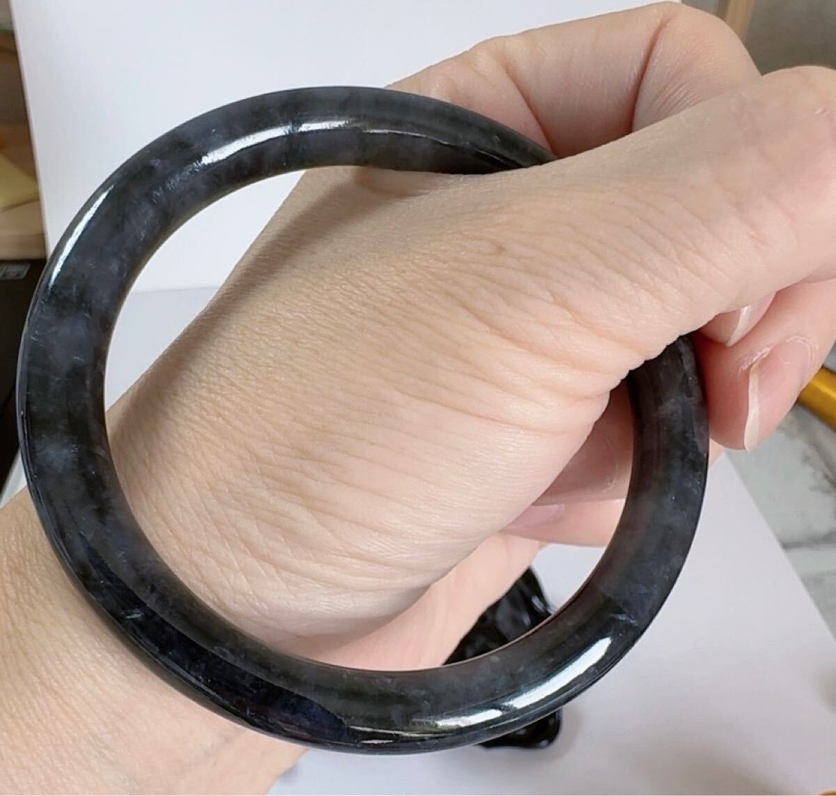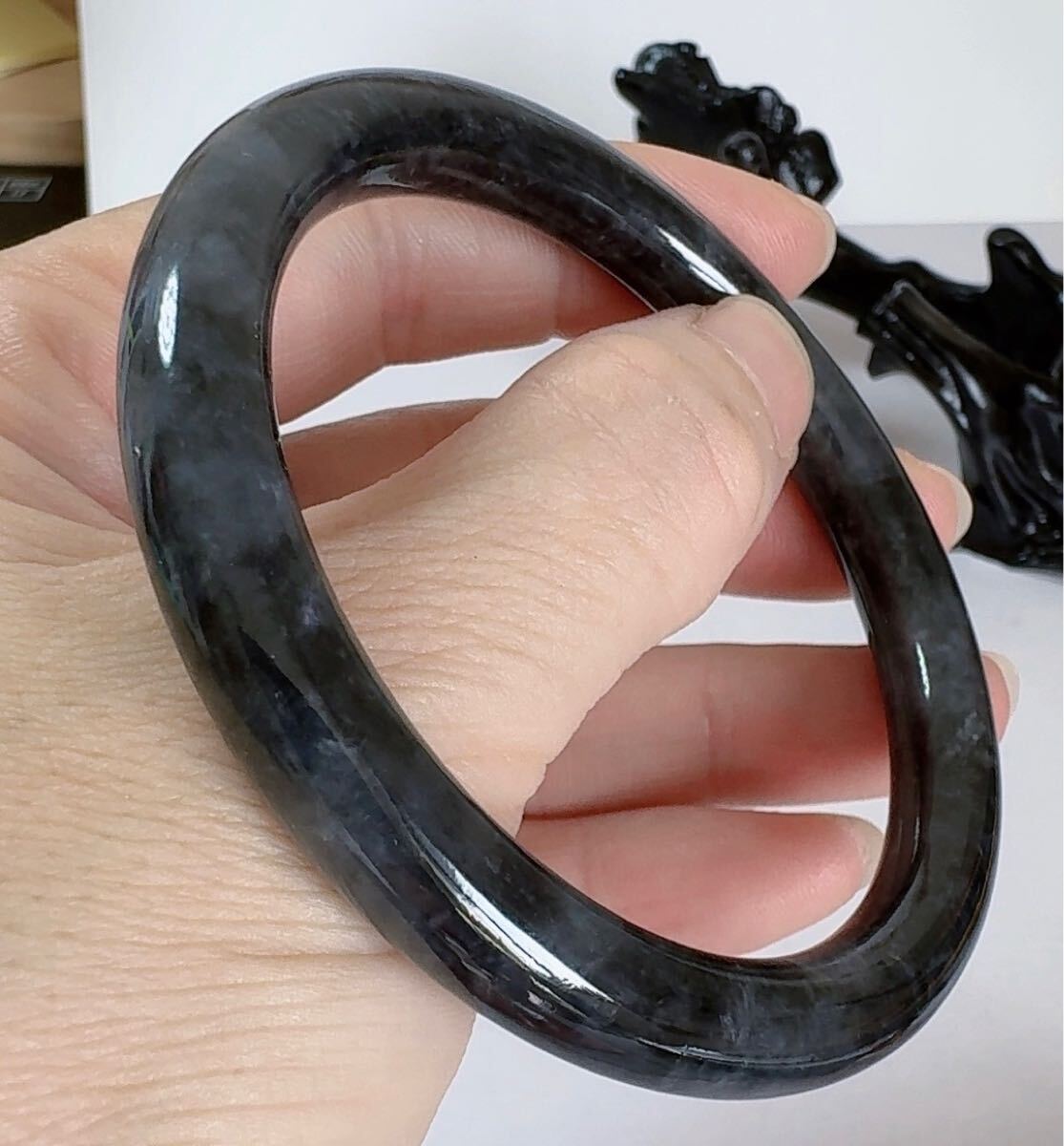 R2-0220 天然黒鳥鶏種翡翠《本物保証》 黒翡翠バングル57.7mm 白黒 上品上質 一点物 魔除け 昇進 成功 風水 金運 財運 幸運 幸福 縁起