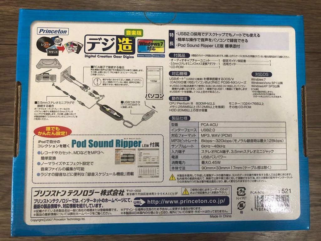 「デジ造(音楽版)Princeton PCA-ACU 取説、Pod Sound Ripper(オーディオ変換ソフト)その他付属品揃い」