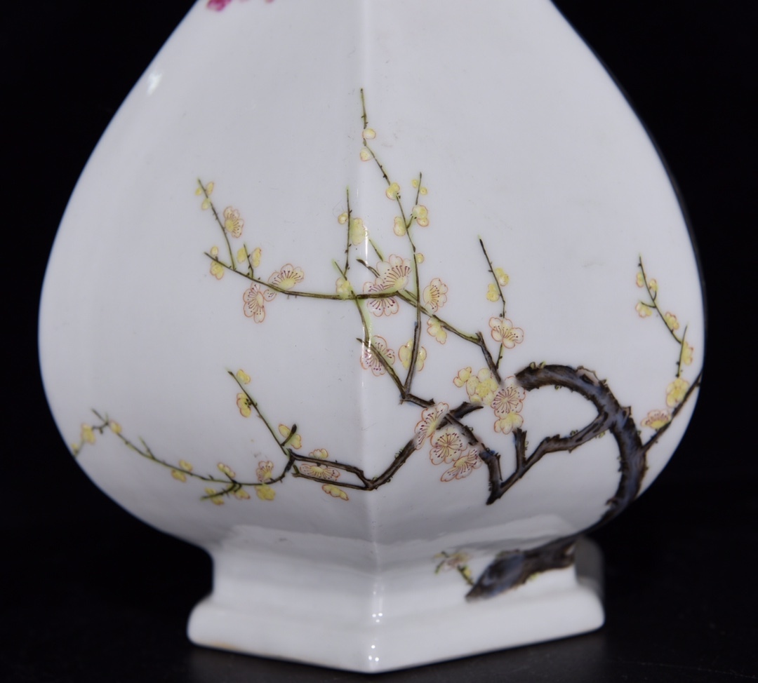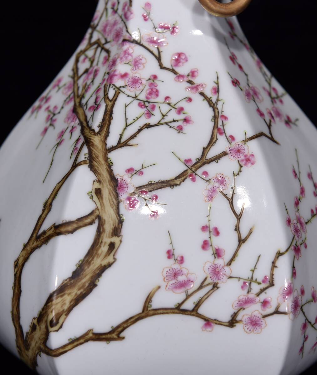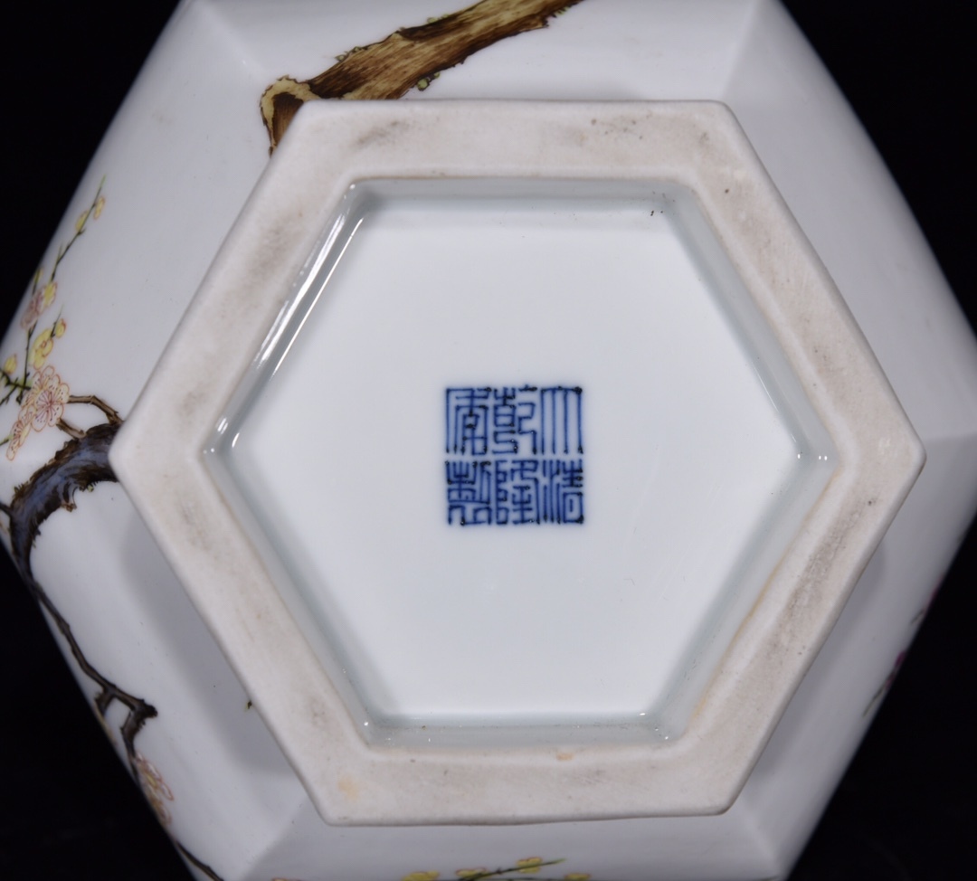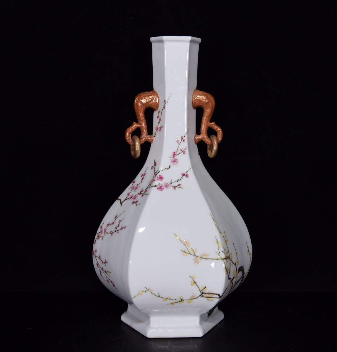 ◆旧家蔵出◆古美術 中国古玩 大清乾隆年製款 粉彩 花鳥紋六方双耳瓶 骨董 古賞物 時代物 A06