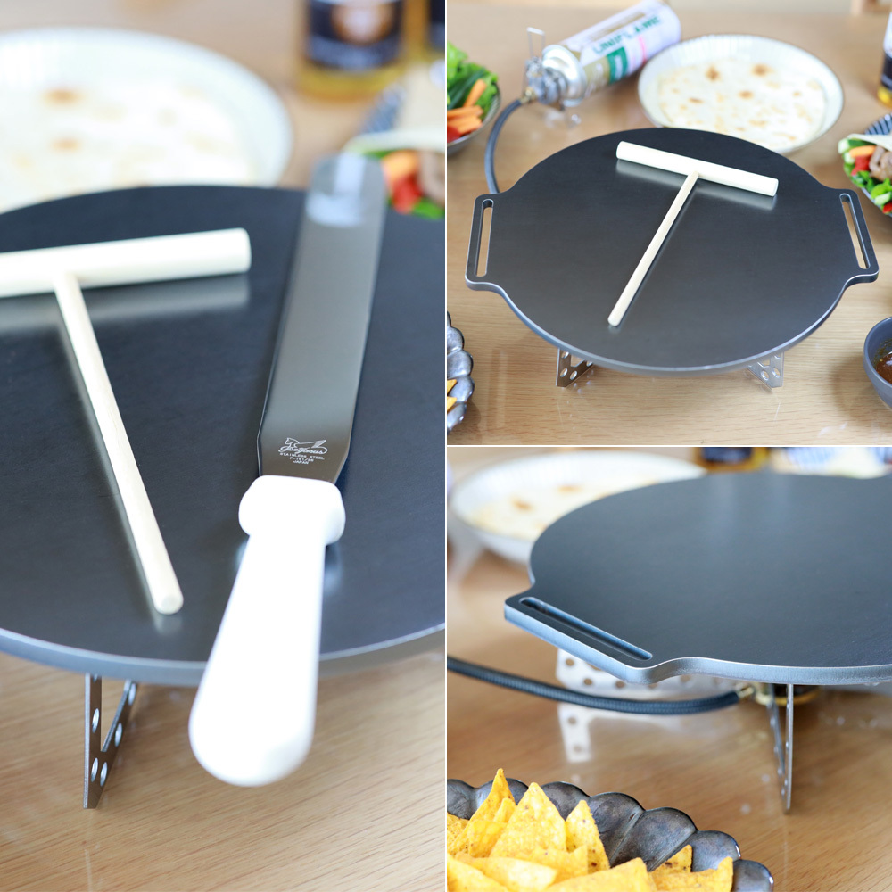 フライパンや電気クレープメーカーとは違う、焼き上がりの食感と生地の味にこだわった本格的なクレープ専用の極厚鉄板となります。