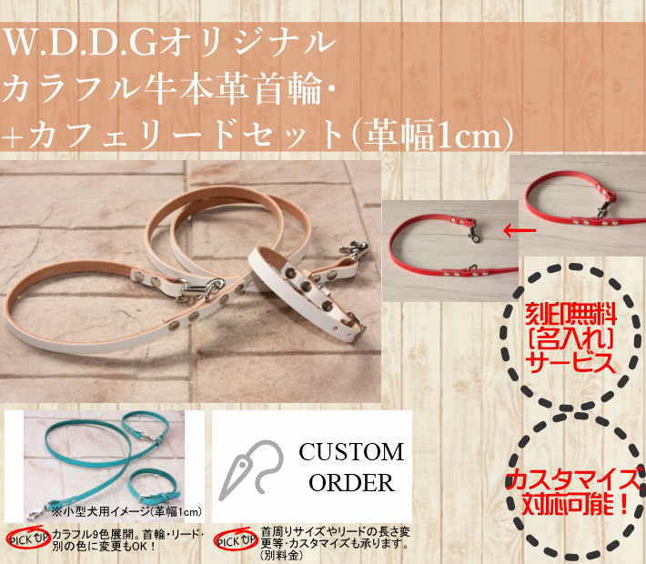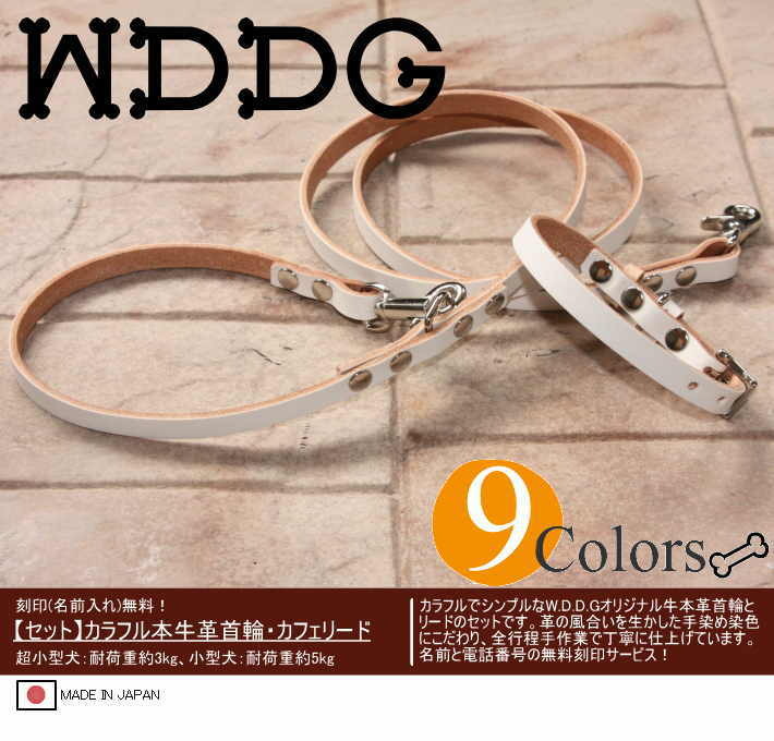 犬 革 首輪 リードセット 名前入り 本革 カラフル カフェリード リード 首輪セット 超小型 ~ 小型犬 犬首輪 迷子札 日本製/