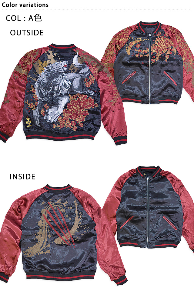 | 粋 桜牡丹日本狼リバーシブルスカジャン◆絡繰魂 KKD-M25923 | ||||||||||||||||||||