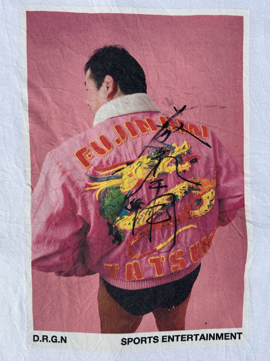藤波辰爾 マッチョ・ドラゴン 歌唱力 新日本プロレス ドラディション 炎の飛龍 サイン入り ドラゴン体操 Tシャツ ●ビンテージ 古着 ●XL