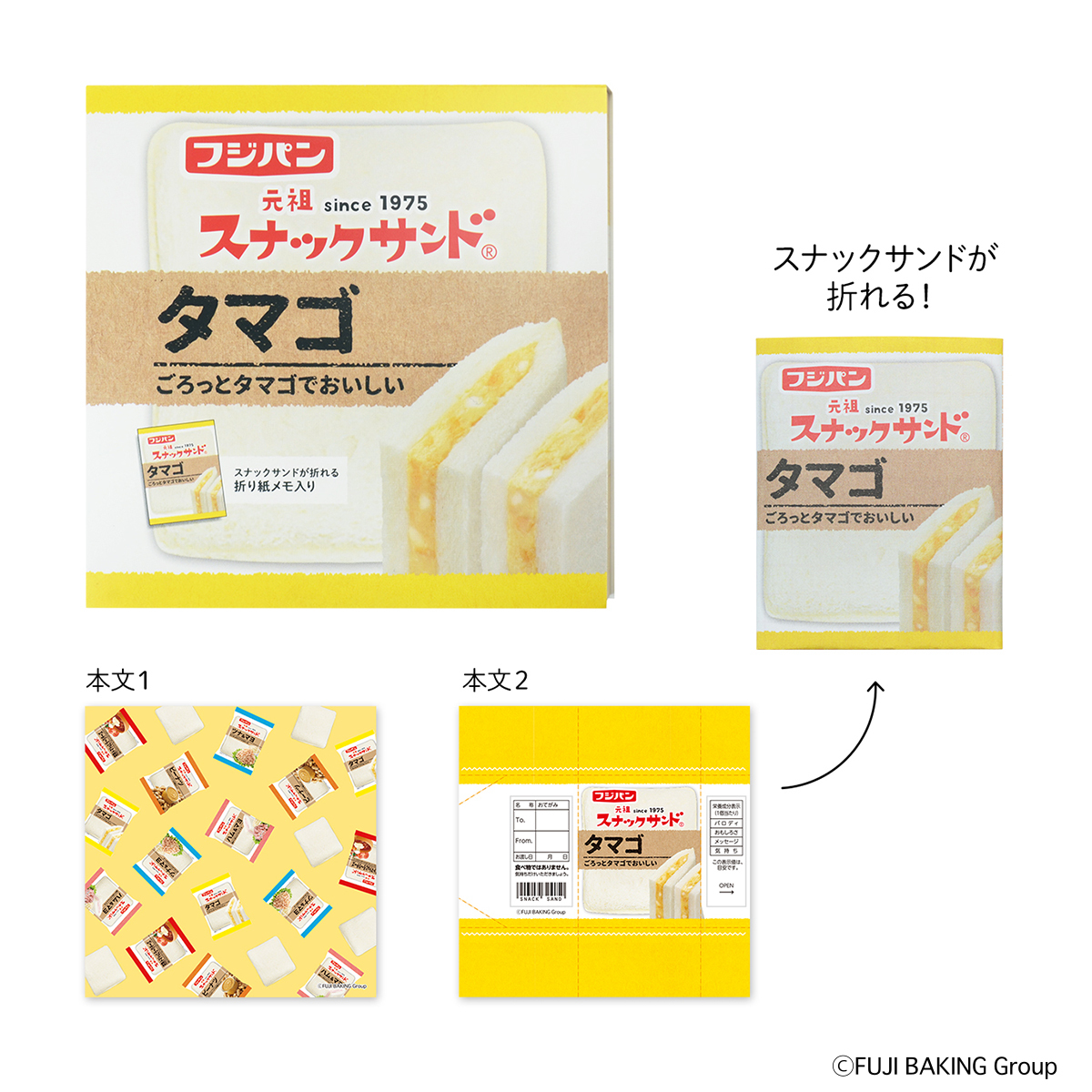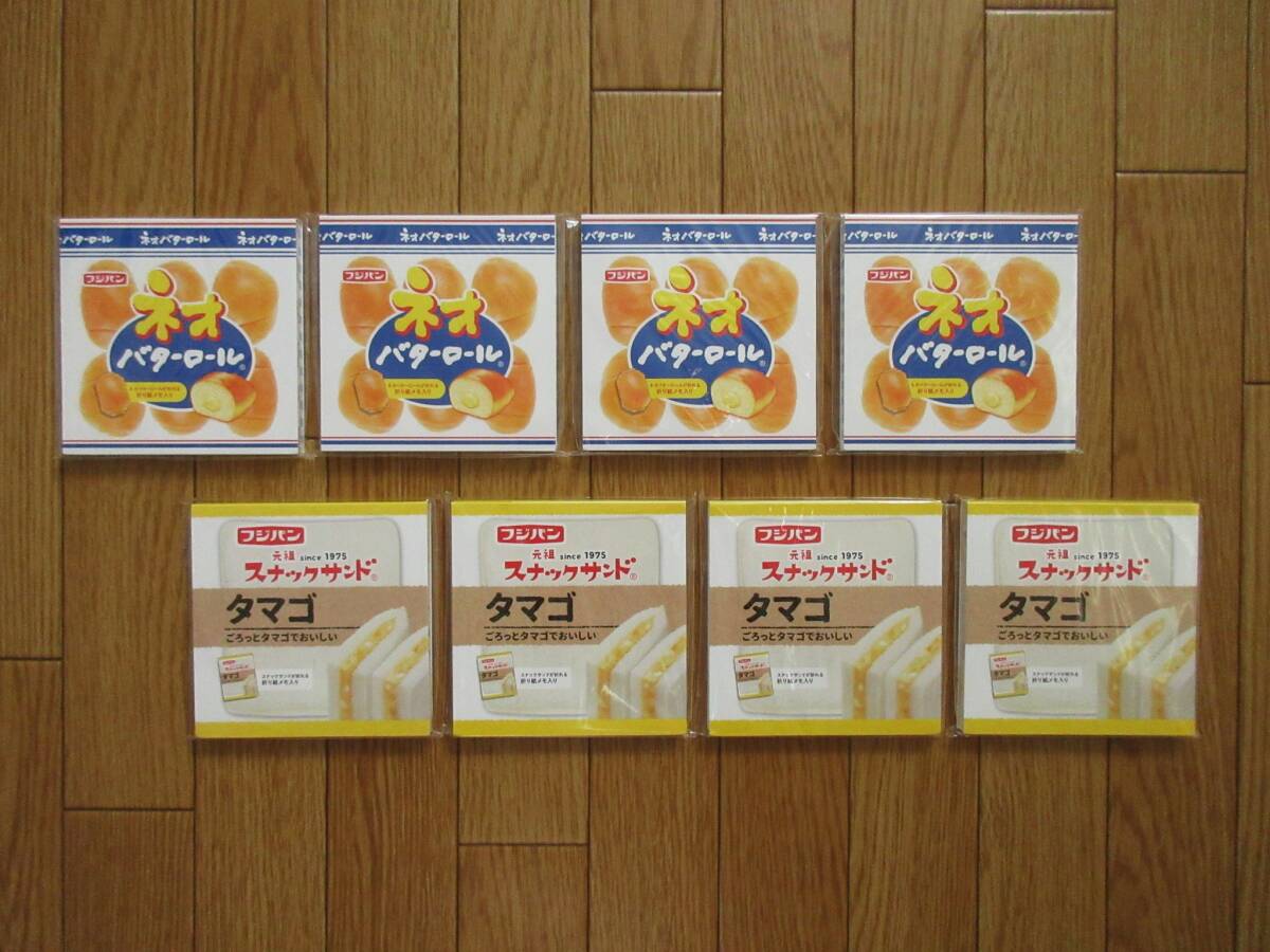 フジパン スクエアメモ 8冊 (ネオバターロール・スナックサンド) 2種×4冊 折り紙 メモ メモ帳 パン タマゴサンド バターロール