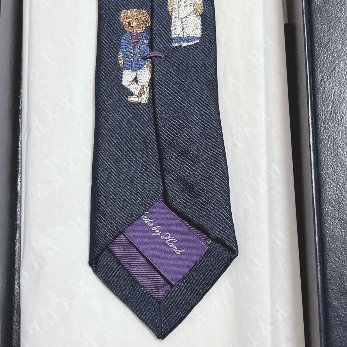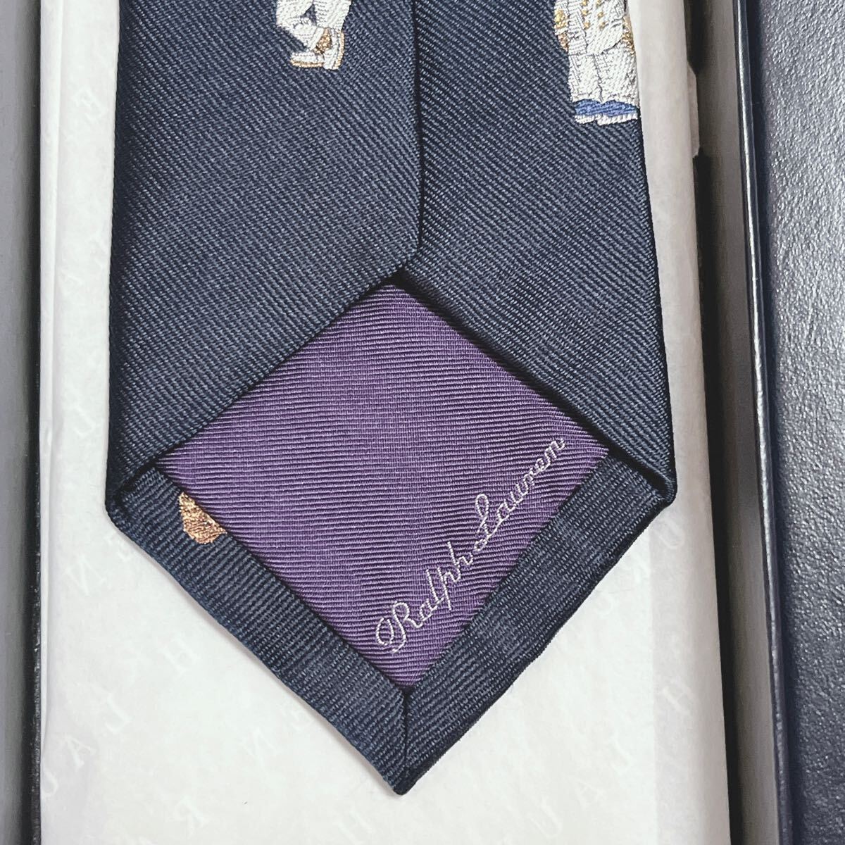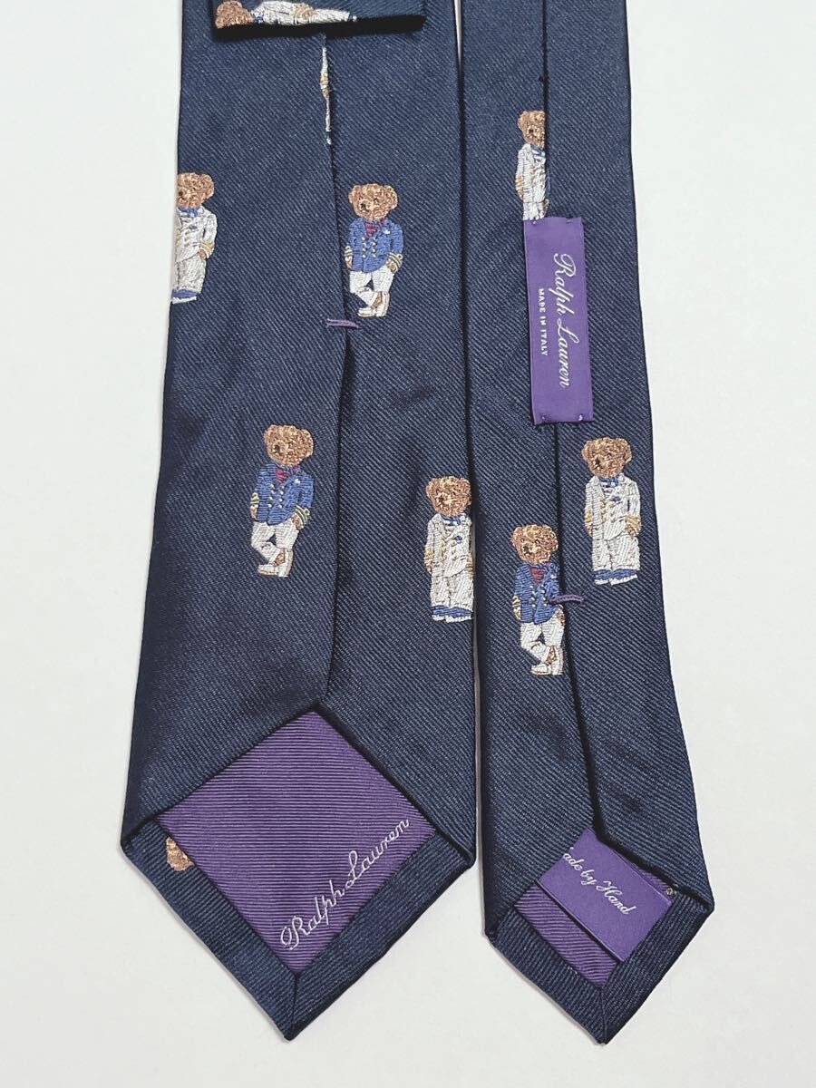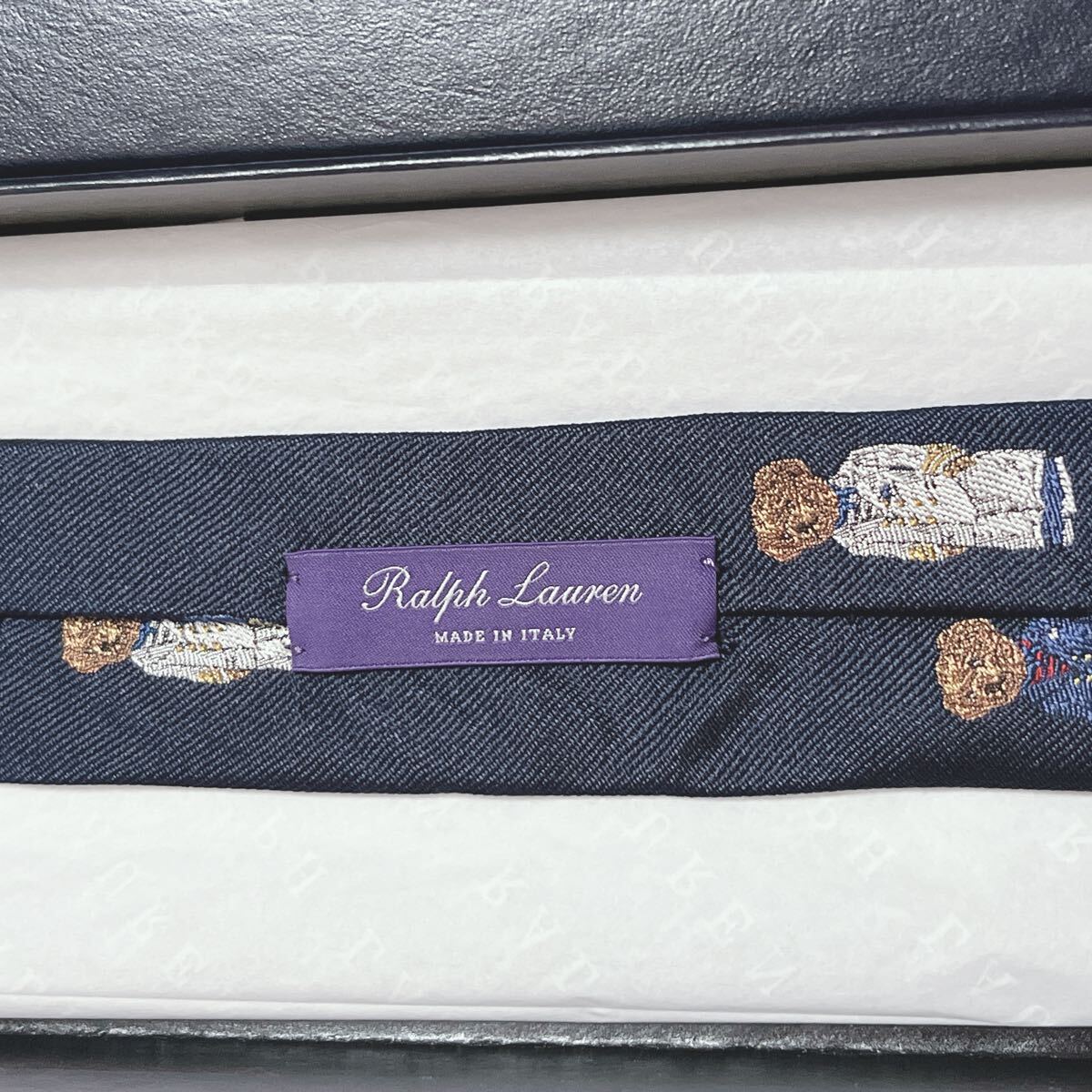 絹(シルク)100% イタリア製 ポロベア 総柄 ジャガード ジャカード 刺繍 スーツ ジャケット 微光沢 RALPH LAURENの最上位ラインであるPURPLE LABELのポロベア柄のネクタイです!