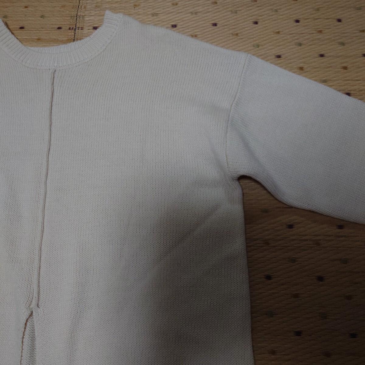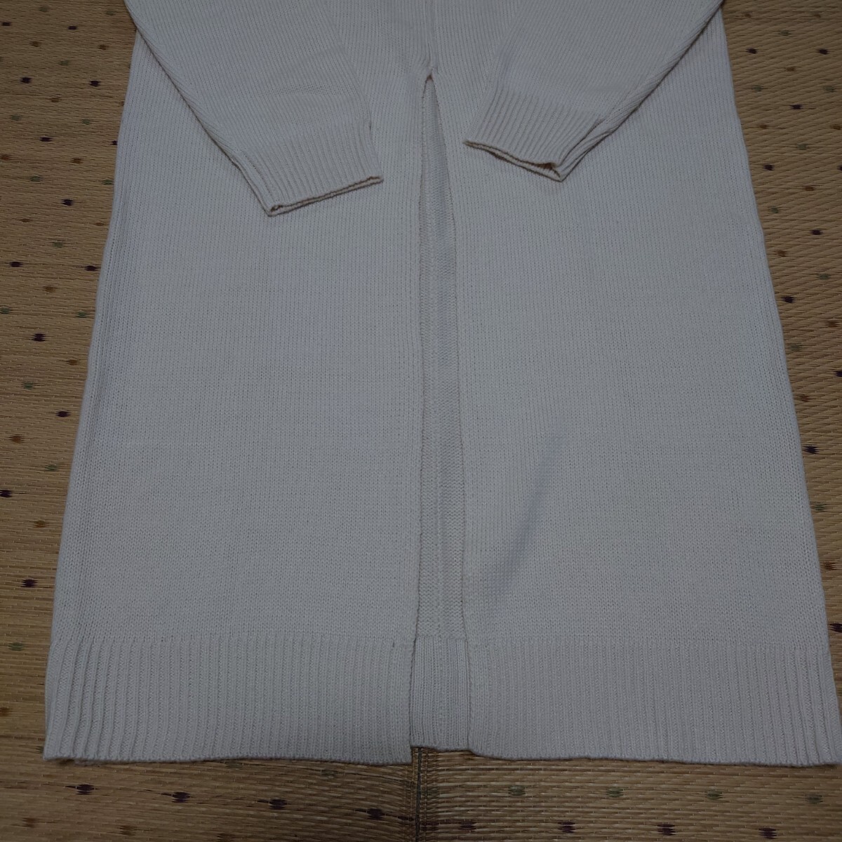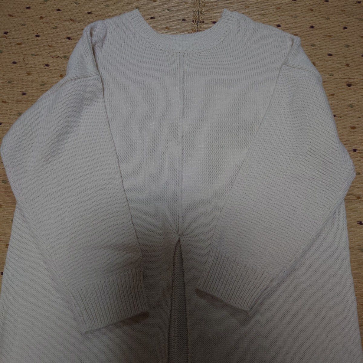 真ん中に深いスリット入りでパンツやスカートの上に重ね着することでおしゃれになります。
