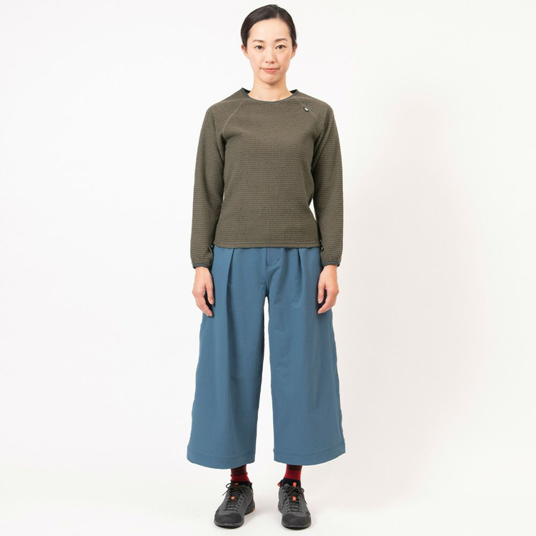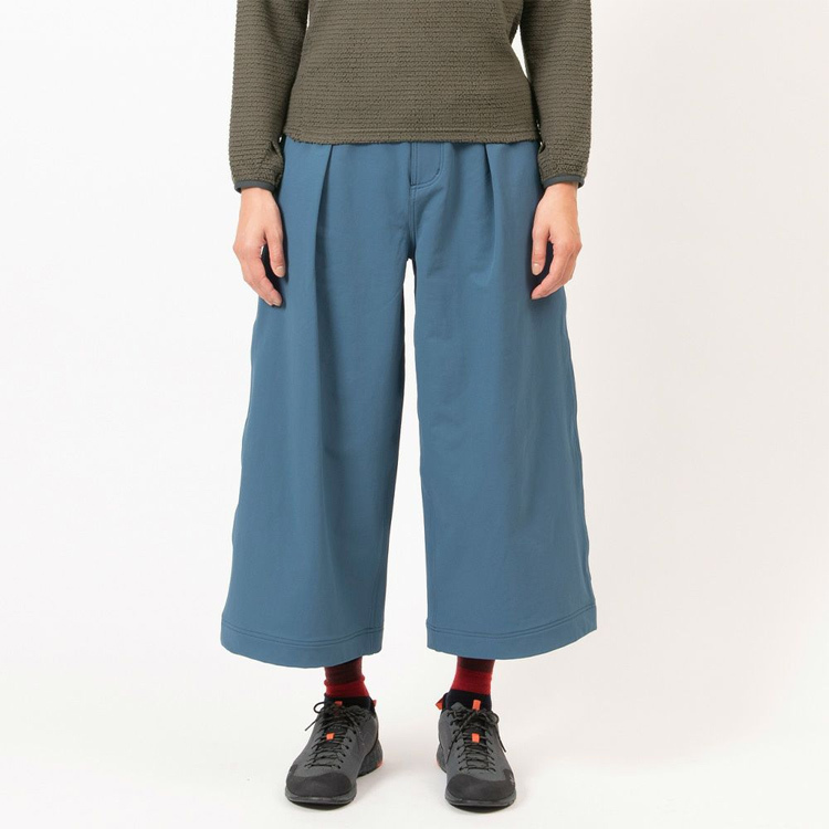 動きやすさと上品なワイドシルエットを両立したトレッキングパンツ。厚手のダブルウィーブストレッチ素材は肌寒い季節に最適。さらに広い裾幅にも関わらず、動きやすいので秋冬のアクティビティにおすすめです。