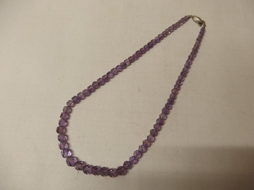 アメジスト?紫水晶?のネックレスです。ミラーボールカット 金具に「SILVER」刻印有。2月誕生石 アクセサリー 装飾品 ケース入。中古品。サイズ:全長41cm体おd(金具含まず)※欠けや亀裂、くすみがあります。※汚れやスレ、キズがあります。ケースに汚れ、ホコリの付着があります。※予めご了承の上ご検討ください。以上のような状態ですが、よろしければどうぞ♪(^^)☆★☆---☆★☆---☆★☆---☆★☆---☆★☆---☆★☆---☆★☆---☆★☆---☆★☆---☆★☆