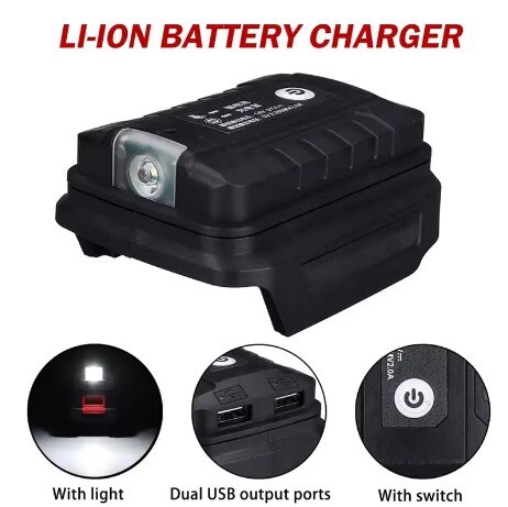 Vt2867: マキタ バッテリー用 アダプター 懐中電灯 ライト 防災 スマホ 新品 デュアル USB ポート LED ランプ Makita 充電
