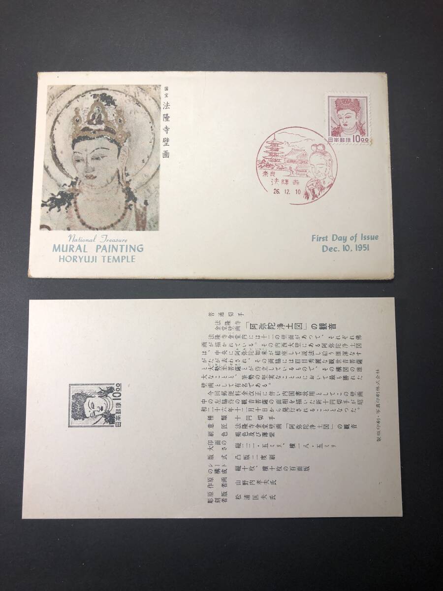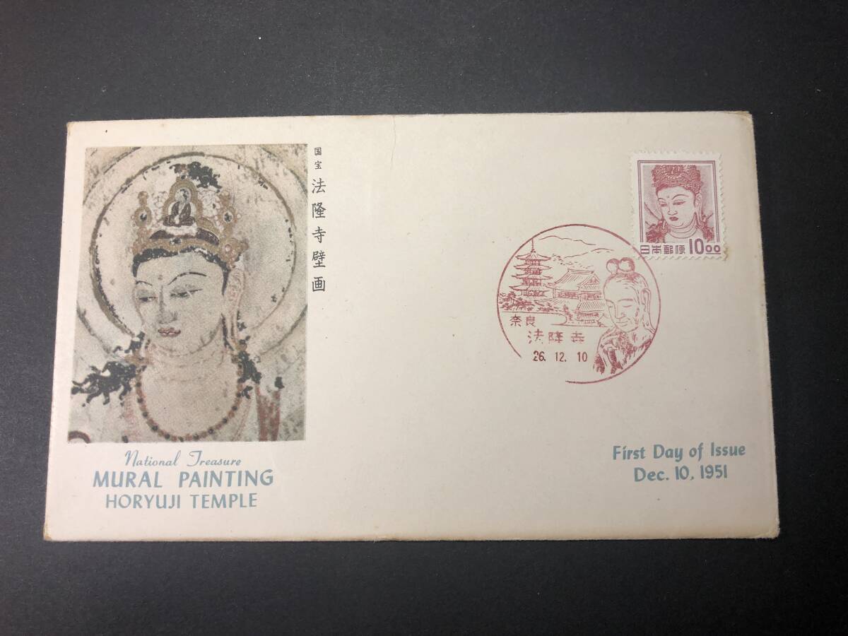 ★FDC 初日カバー★普通切手 昭和すかしなし 10円(銭単位)「法隆寺壁画」 郵便友の会版 昭和26年発行 Y6318