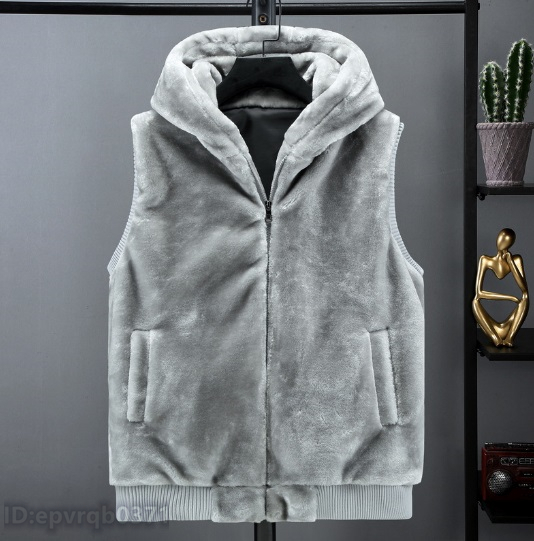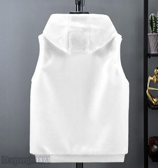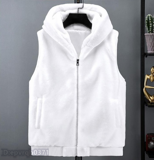 ベスト 新入荷 メンズ フード付き 厚手 毛皮 ベスト フェイクファー 紳士 秋冬 男女兼用 アウトドア サイズ選択可 2色選ぶ/白/Lサイズ