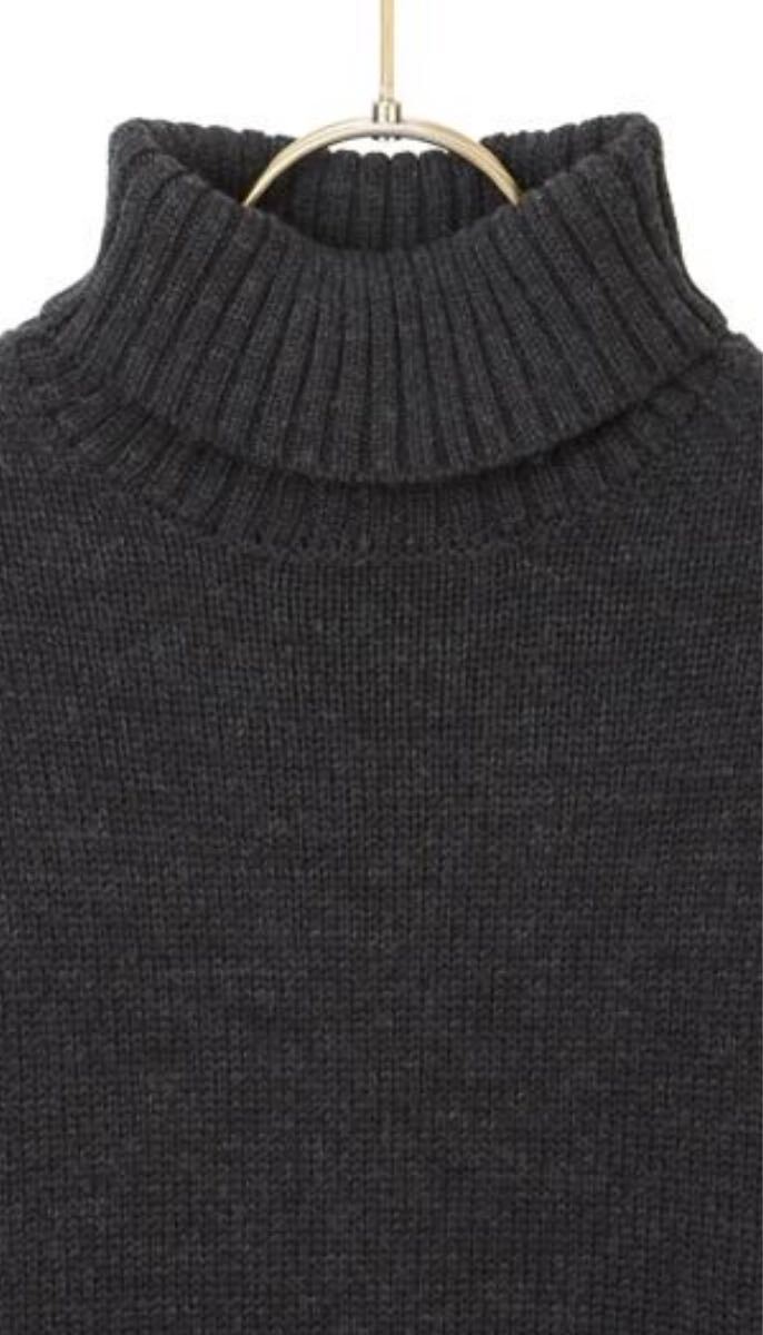 ジャケットインしても着易いスッキリとしたシルエットのタートルネックセーターです。