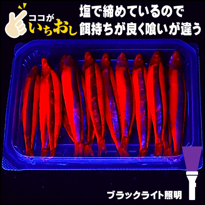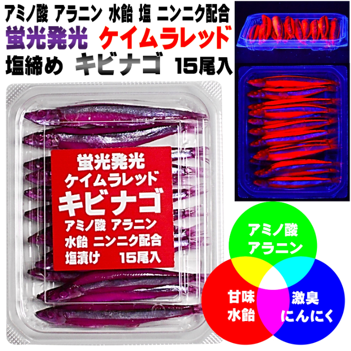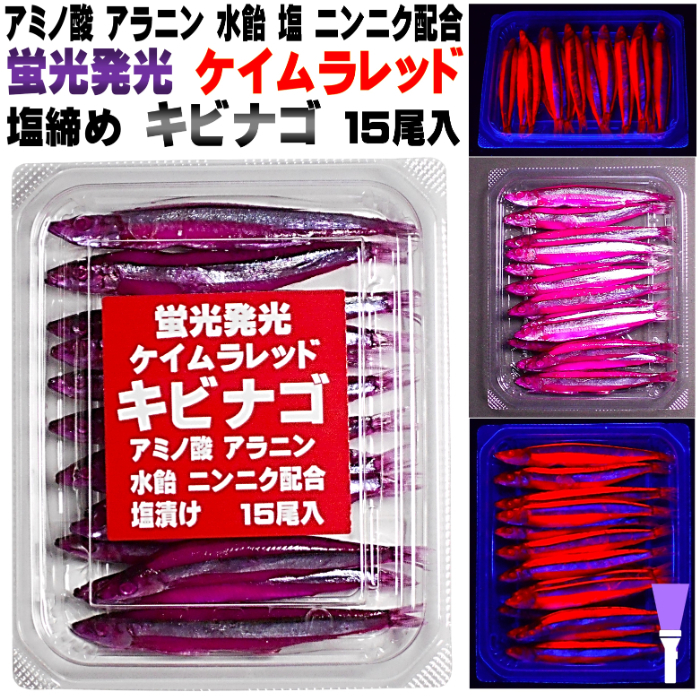 釣り餌 キビナゴ 餌 アミノ酸アラニン・激臭にんにく・甘味料水飴配合 紫外線 蛍光発光 ケイムラレッド 塩漬け キビナゴ 15尾入り