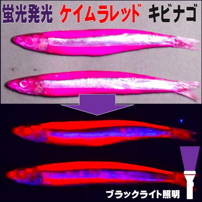 そんな魚に見えている紫外線にケイムラレッドに蛍光発光して強烈アピール。