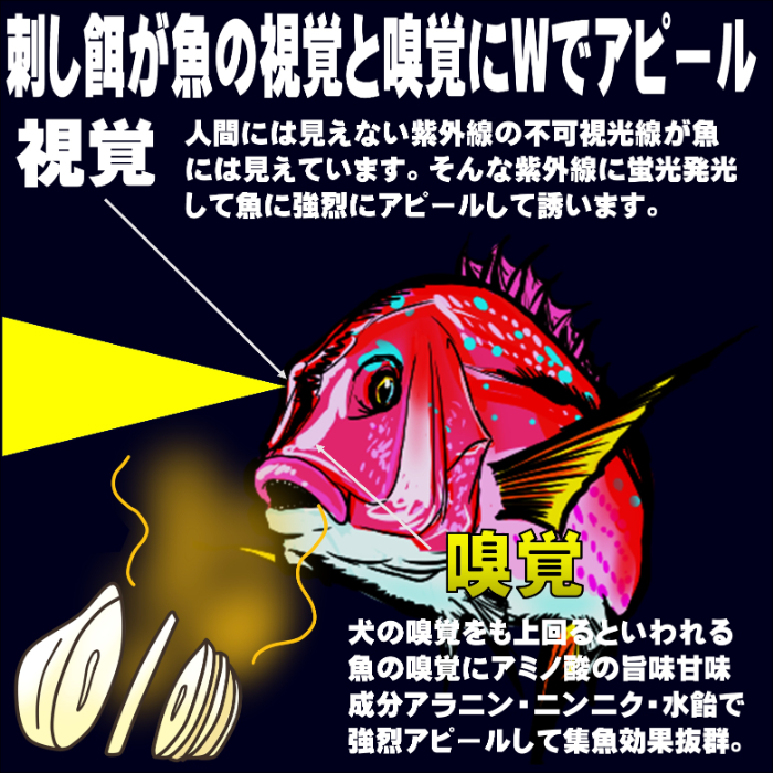 激臭・ケイムラ蛍光発光で魚を寄せる
