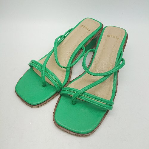 ◇ minia ミニア スクエアトゥ ストラップ 無地 サンダル サイズM グリーン レディース E