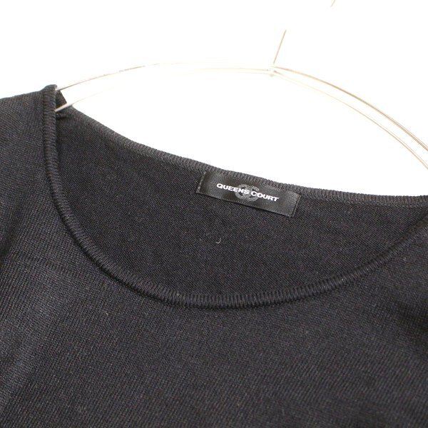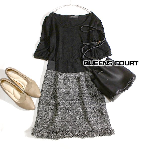 美品 QUEENS COURT クイーンズコート 編み地切り替え ツイードニット ワンピース 2号 M 秋 冬 24C11