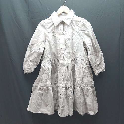 ◇ GRL グレイル ティアード フロントボタン 長袖 ミニ丈 ワンピース サイズS グレージュ レディース E