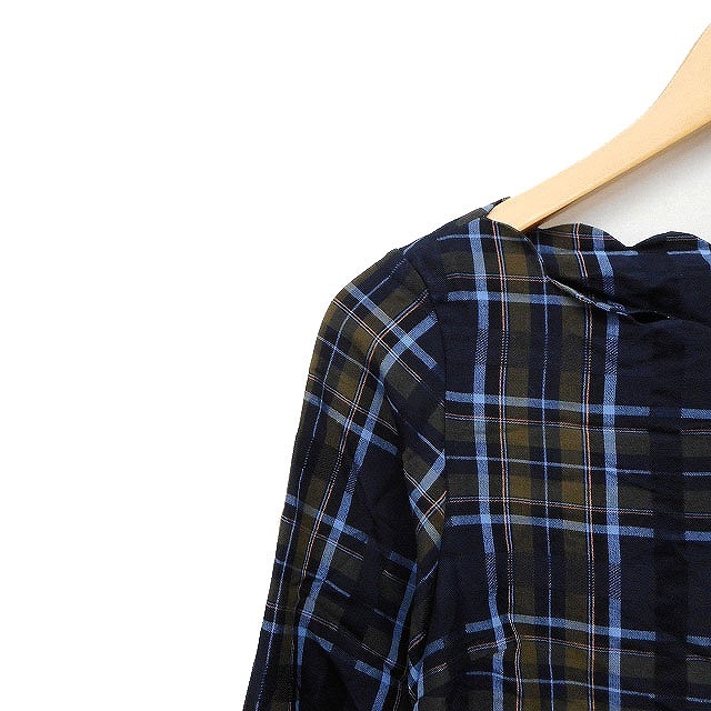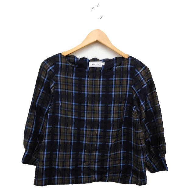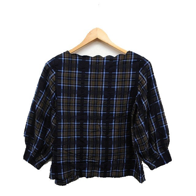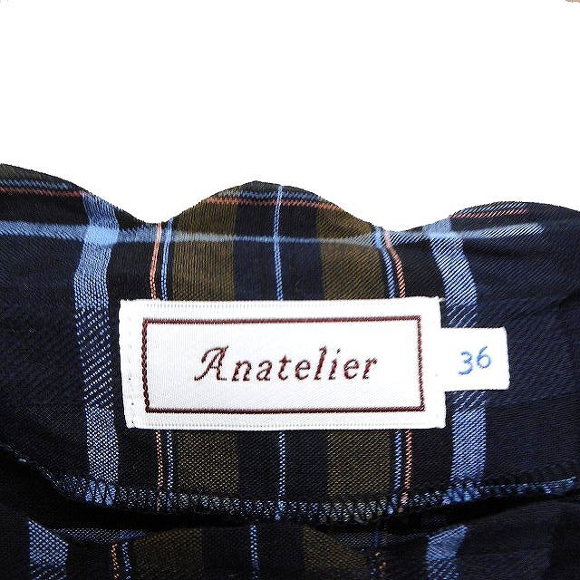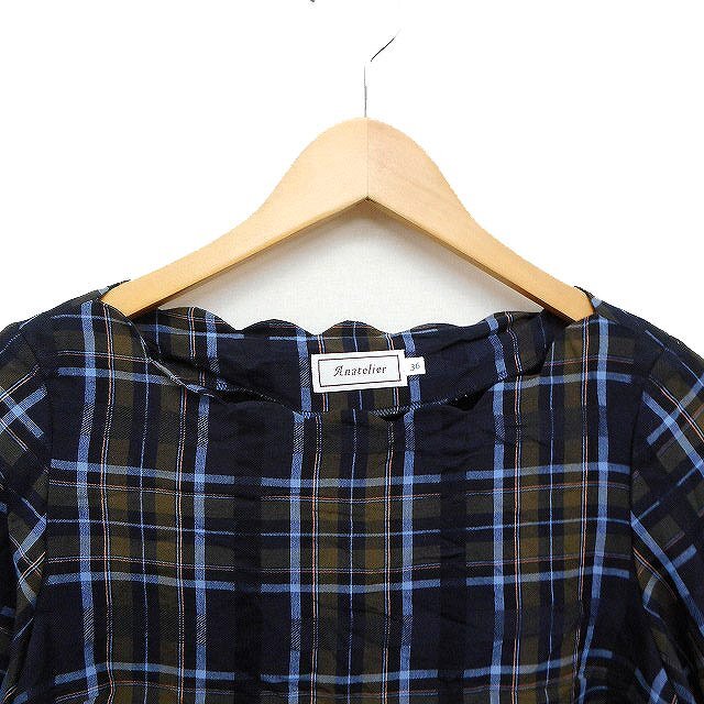 アナトリエ ANATELIER チェック柄 シャツ ブラウス スカラップネック 七分袖 36 ブラック 黒 /FT49 レディース