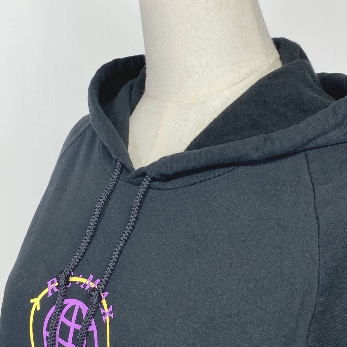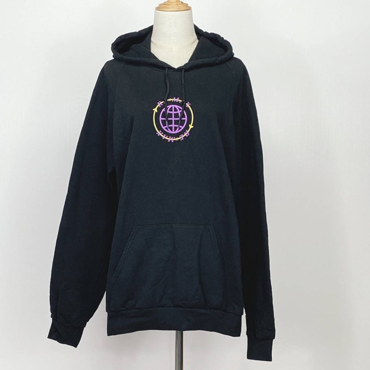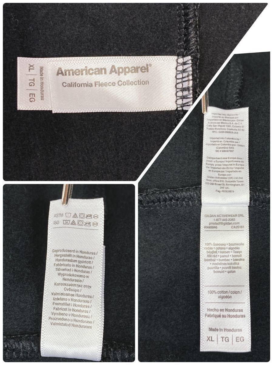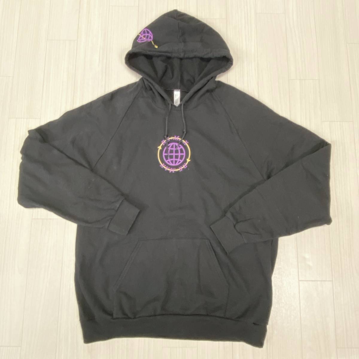 YZ0649 American Apparel アメリカンアパレル レディース ワンポイント フード付 パーカー ブラック 黒 XLサイズ ホンデュラス製 USED 古着
