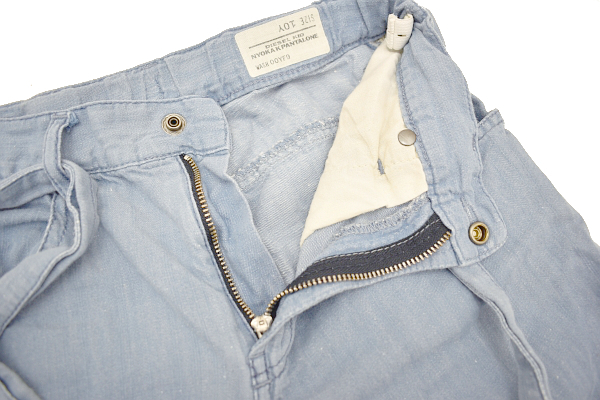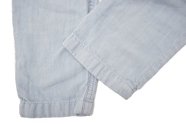 リネン混合デニム ウエスト絞るヒモあり パンツ 柔らかい生地感 ウエストシャーリング(調節できるゴムあり)