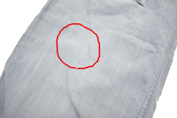 全体的に綺麗ですが、目を凝らしてよく見ると・・右ひざに薄っすらとした汚れが見られます。大きくは目立たずまだまだご活躍いただけるかと思います。
