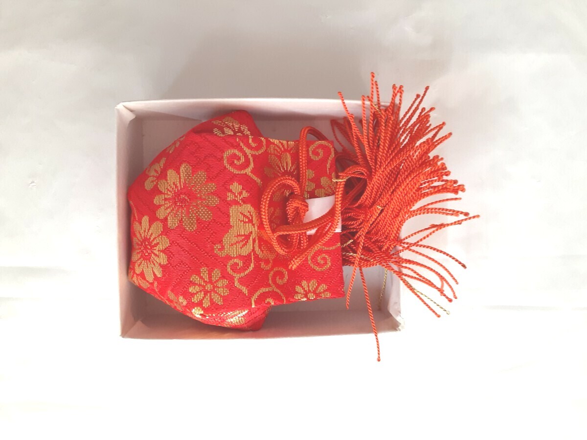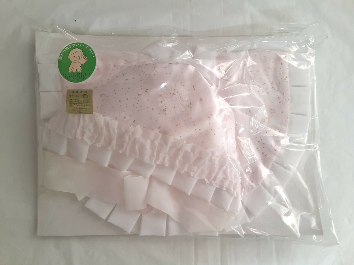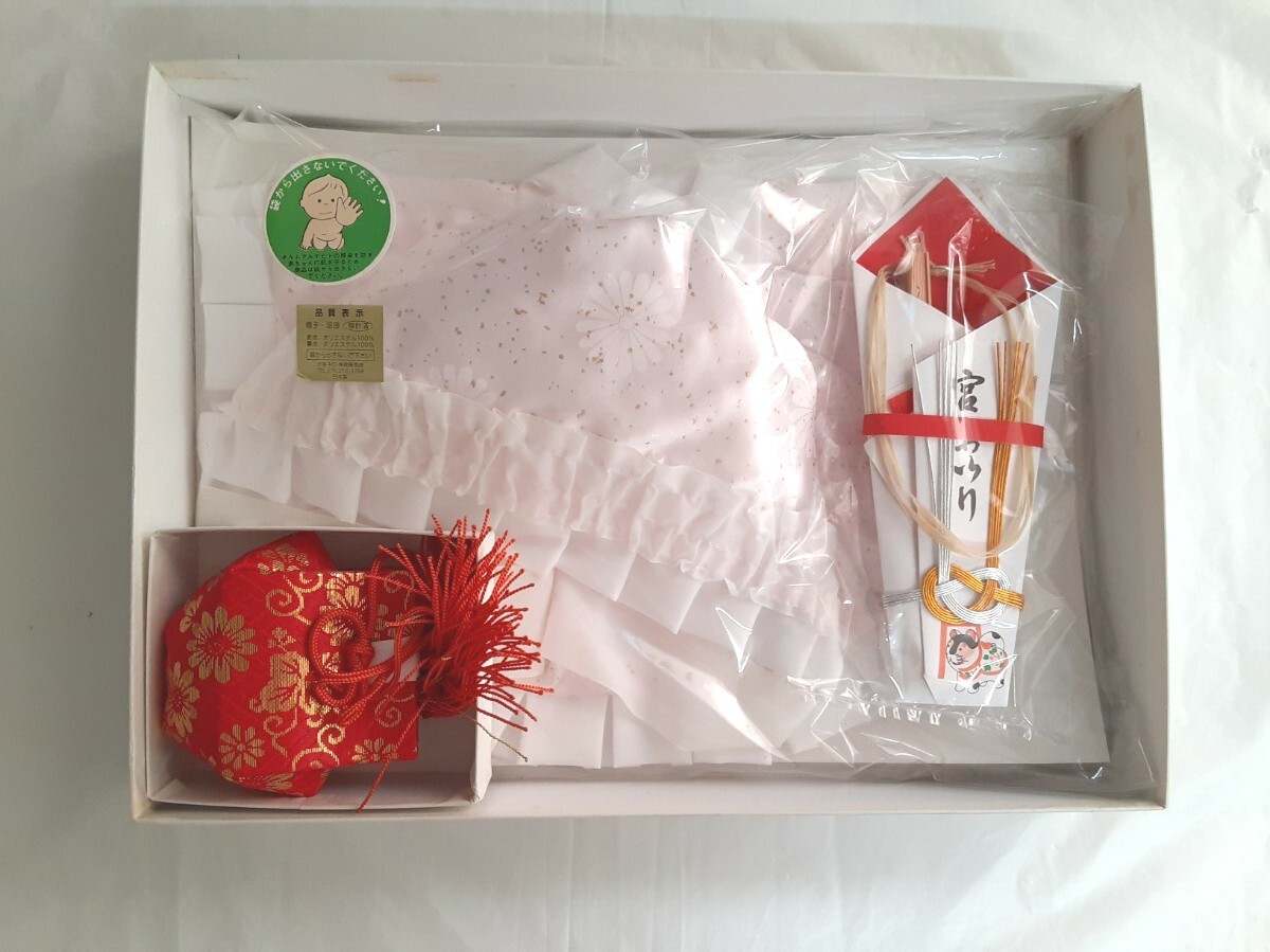 ☆お宮参り 女の子用☆よだれかけ 帽子 お守り 扇子 4点セット☆長期保管品なので箱は汚れ☆凹みあります☆品物美品☆ピンク☆フリル☆