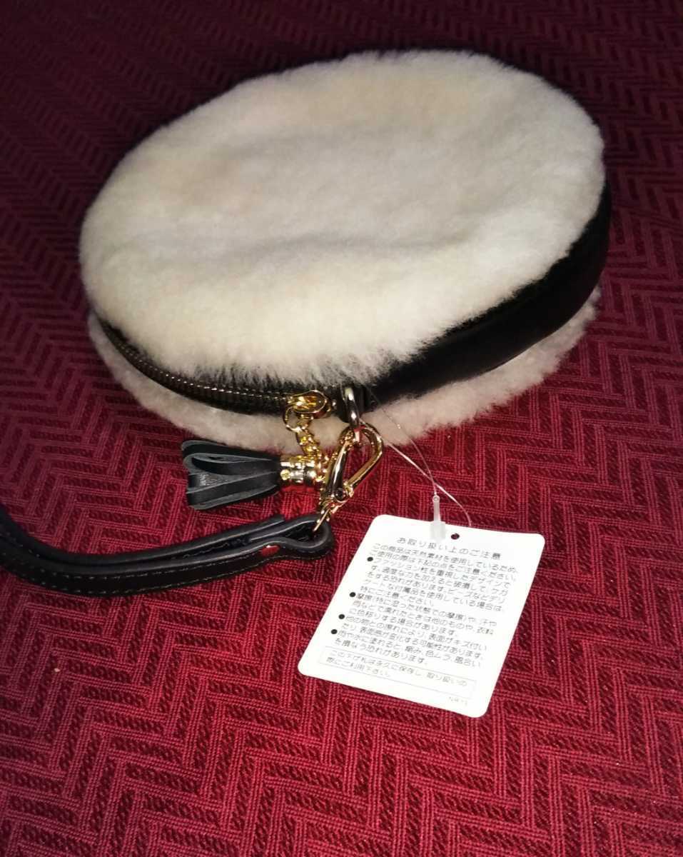 ROSE BUD◆ローズバッド エコムートン 丸型 サークル クラッチバッグ リストレット ポーチ◆新品タグ付き 送料600円~