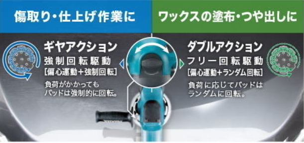 作業に合わせて2モード切替え、浅い傷取りから仕上げまでを、この1台で
