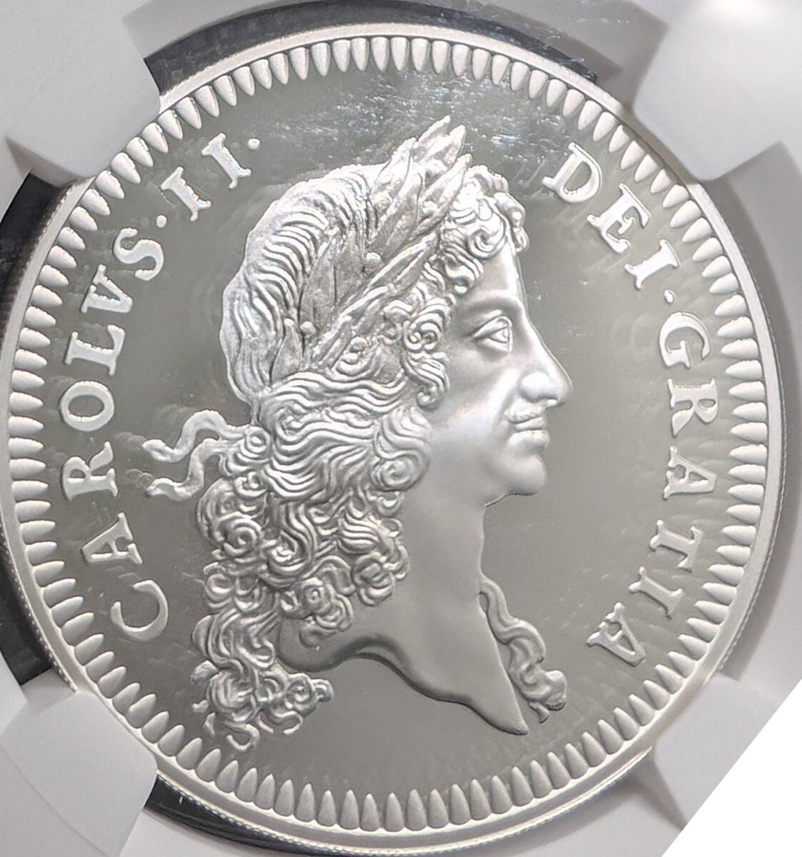 英国王立造幣局の君主シリーズ、今回はチャールズ2世のコインのご紹介です。ちなみにこのコインのオリジナルデザインは機械でコインの製造がされた初期のもので、1億円も下らない価値の高いものとして知られています。
