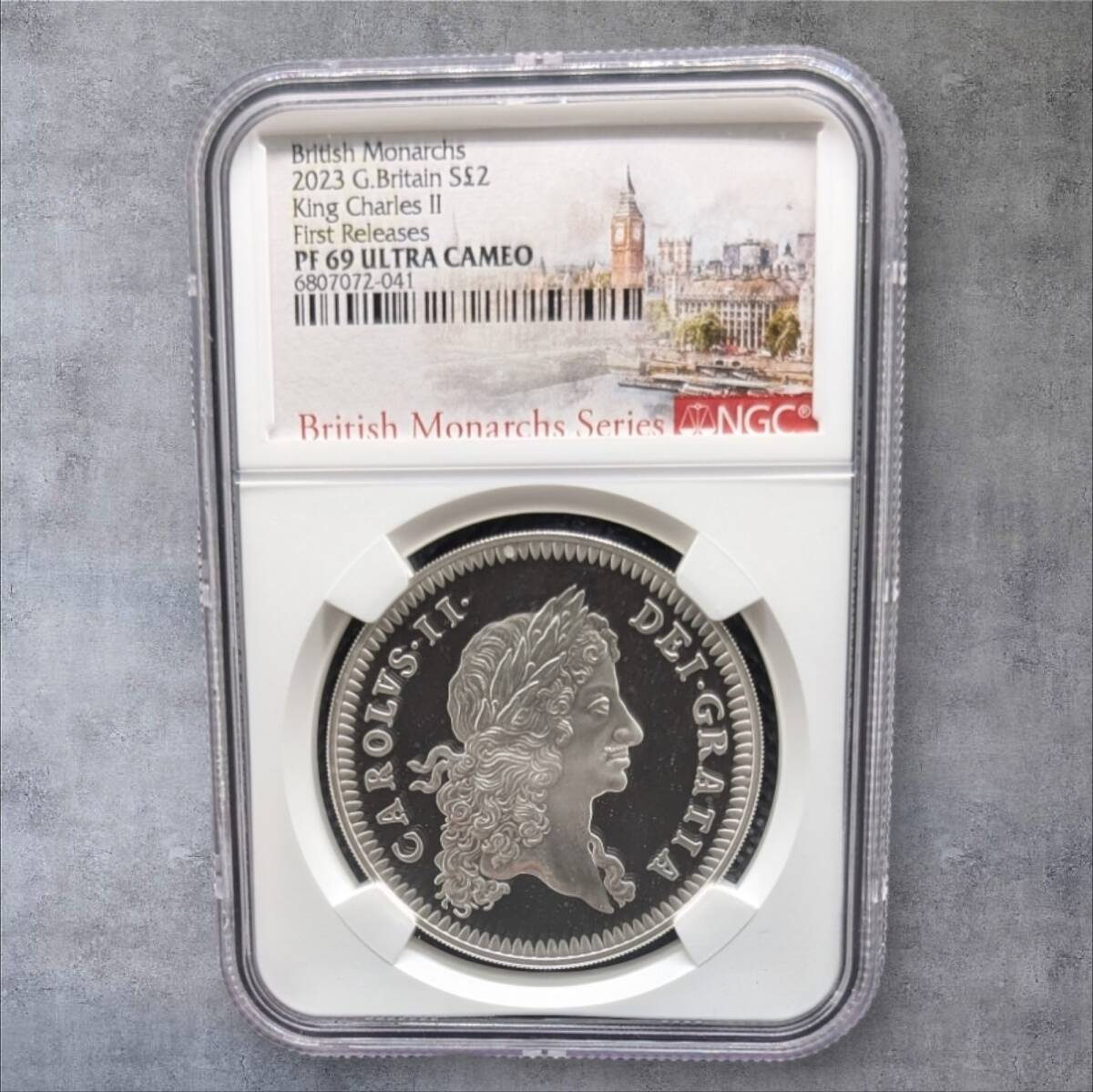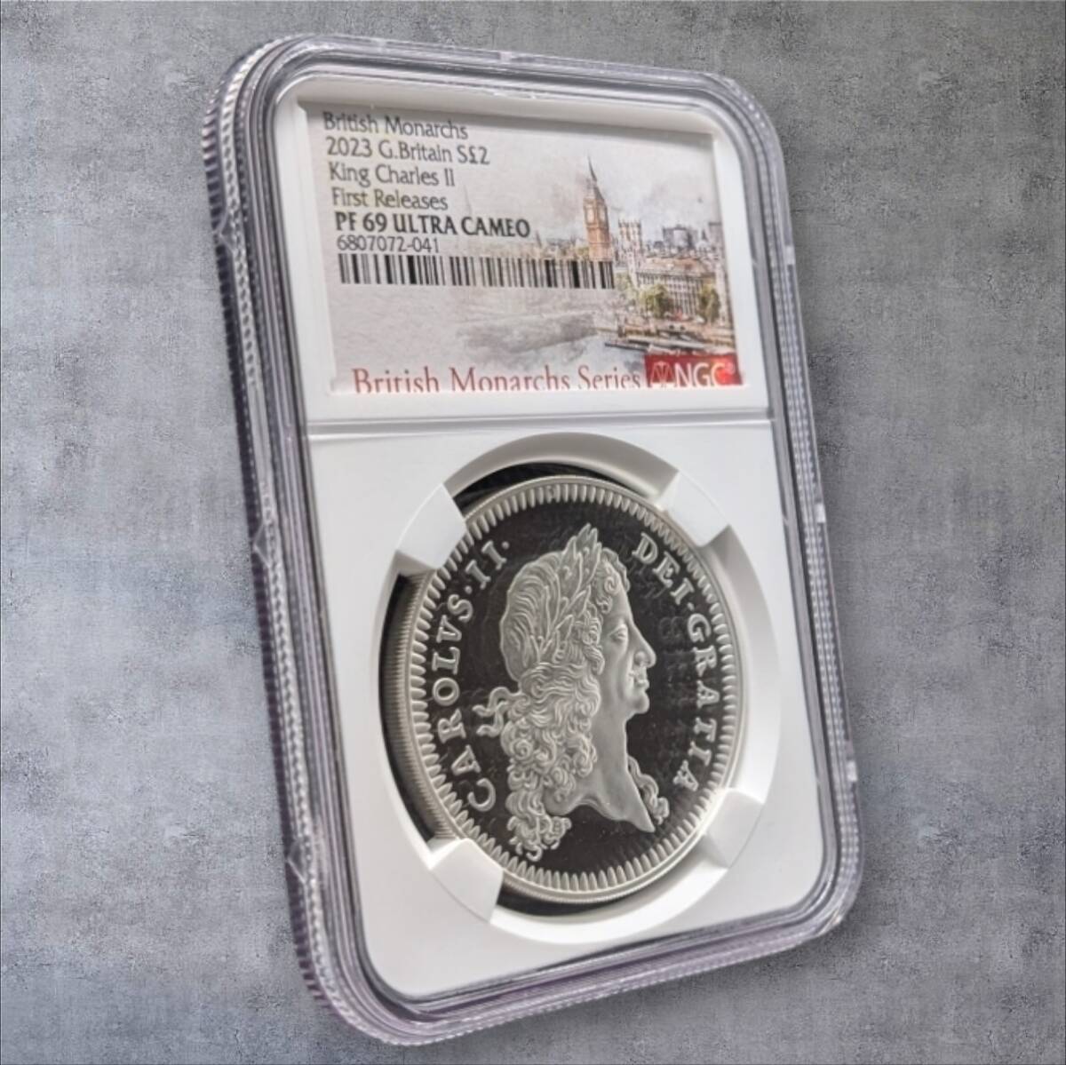 ★チャールズの競演★2023 PF69UC イギリス 君主シリーズ チャールズ2世 2ポンド 銀貨 モダンコイン 資産保全