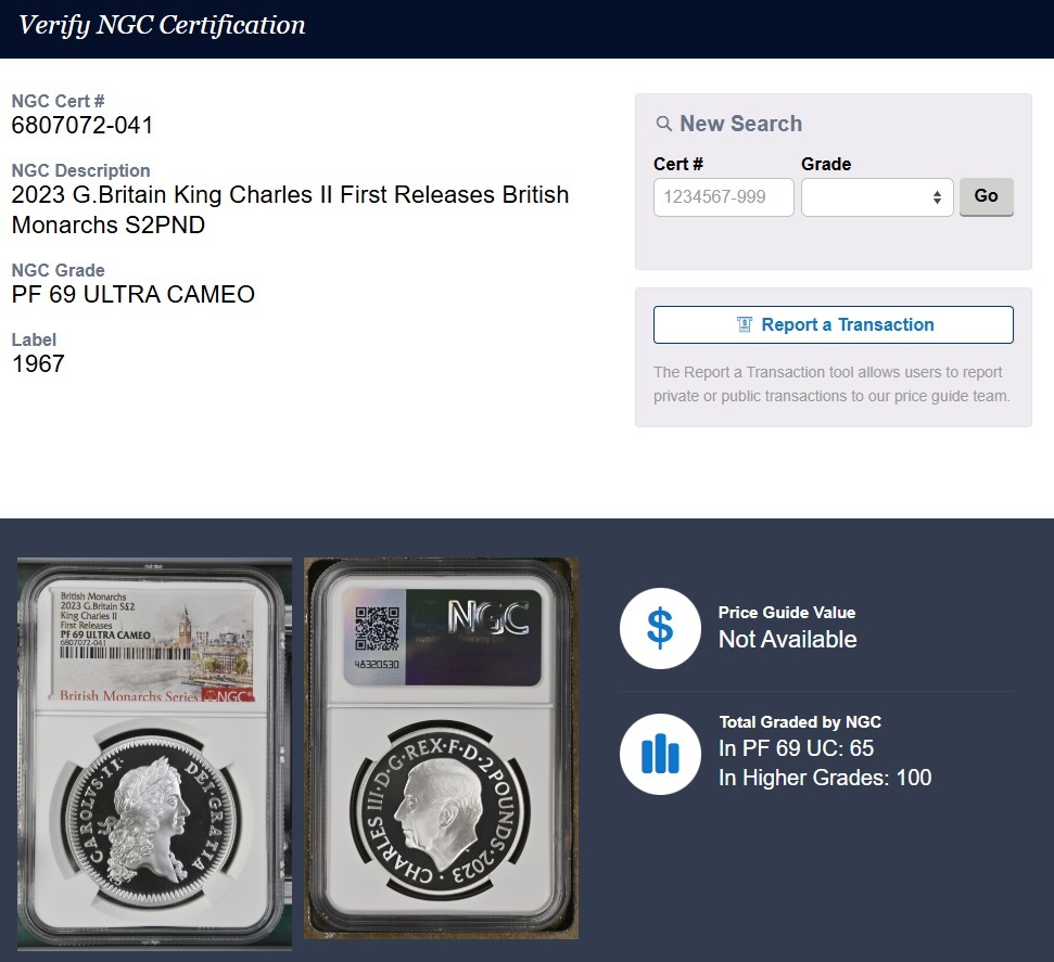 こちらのコインは、世界の2大鑑定機関 NGC社による真贋判定とグレーディングを経てスラブケースに収められたコインになります。