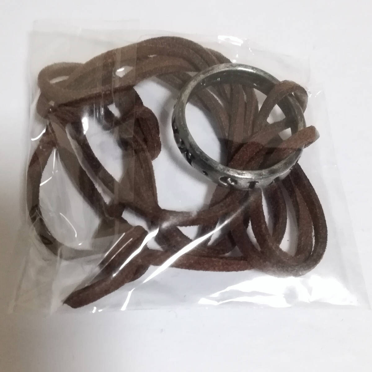 リング直径は約2.5センチ、紐の素材はレザーです。安っぽいスムースレザーではなく、表情があり、暖かみのあるスエードタイプなのが特徴です。