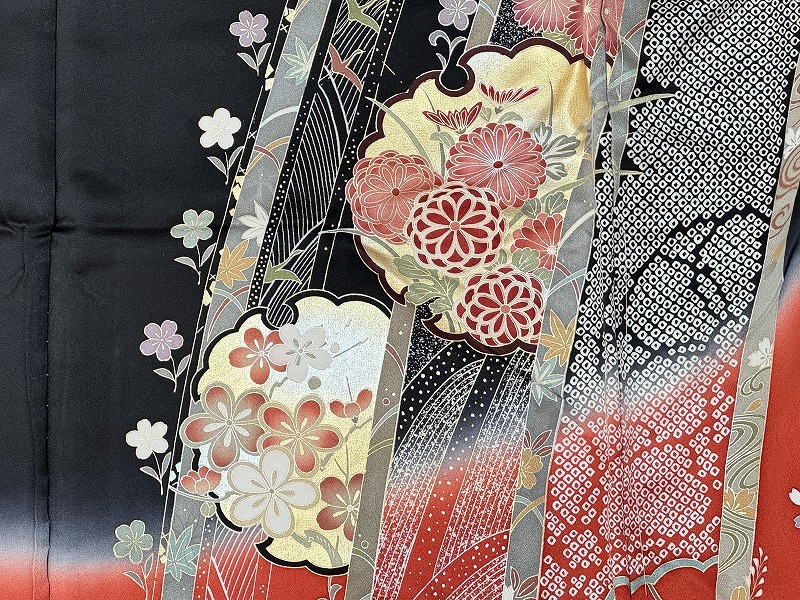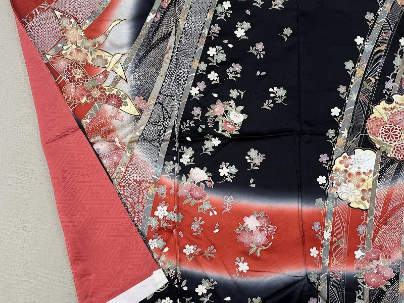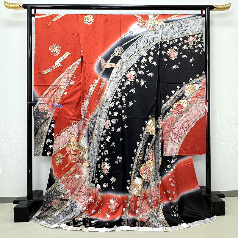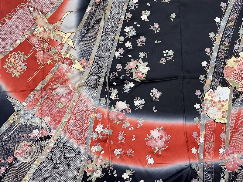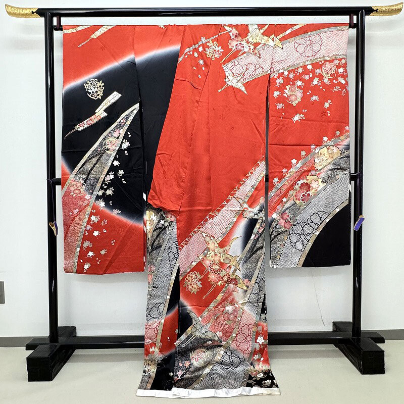 ◆振袖/駒取り刺繍/鶴と花柄/新品/未仕立て/正絹/絵羽/(梱包サイズ:80)◆* コメント・全体的に薄汚れ・薄い色ヤケがあります。 ・新品ですが、経年保存されていたお品ですので、ご理解のある方のご入札をお願い致します。 ・絵羽(仮縫い状態)ですので、着用にはお仕立てが必要です。当店でもお仕立てを受け賜わっております。お仕立て代は下記の「お仕立て価格表」をご参考ください。 ・ ・ * 品質・サイズ -- 着物サイズ目安 -- ・身丈・約168cm、袖丈・約116cm、裄・約71cm ・表・渋い朱色×黒色 八掛・渋いピンク色 ・ ・※一部商品のみのお取引はお断り致しております。入札前・落札後に一部の商品のみのお取引交渉や発送方法(メール便等利用)の交渉はご遠慮下さい。サイズ・発送詳細を必ずご確認のうえ、ご理解・ご納得のうえでのご入札をお願い致します。 ・梱包サイズ:80サイズ(発送詳細必読) * 程度 当社基準ランク・・・【4】