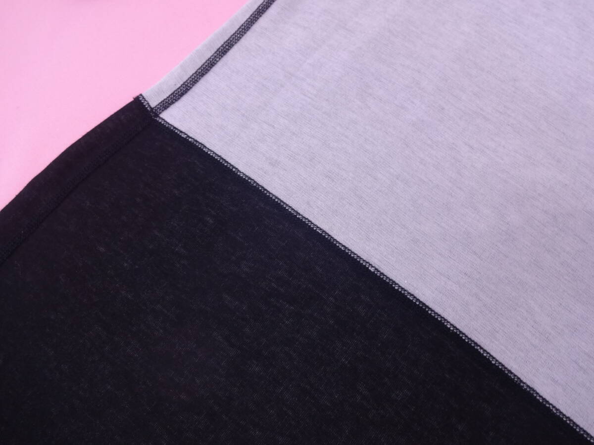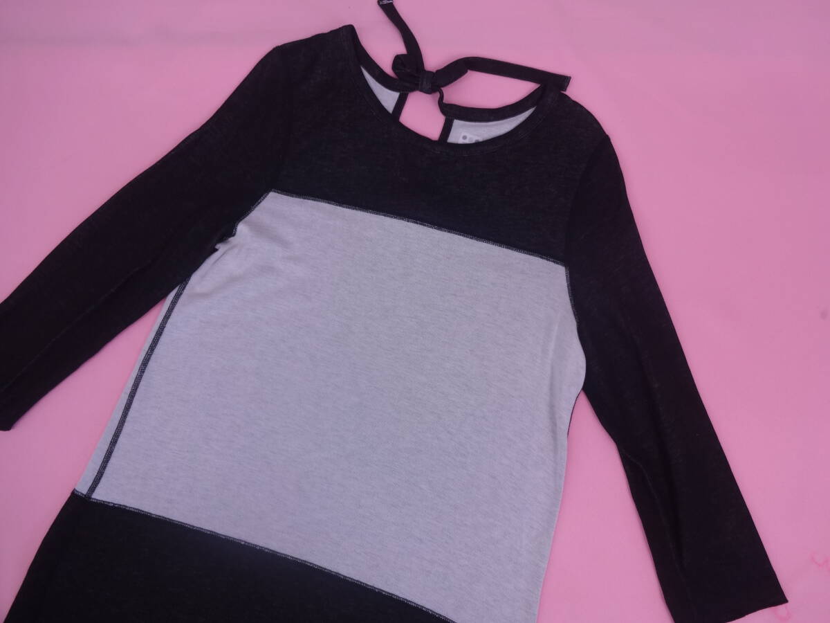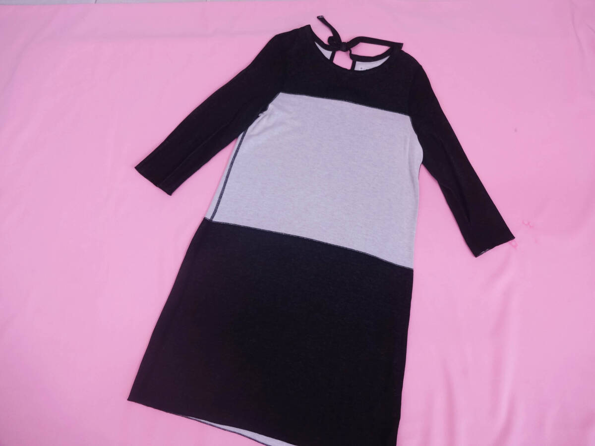 Three Dotsスリードッツ バックリボン ブロックカラーワンピース ストレッチジャージ  ブラック ライトグレー