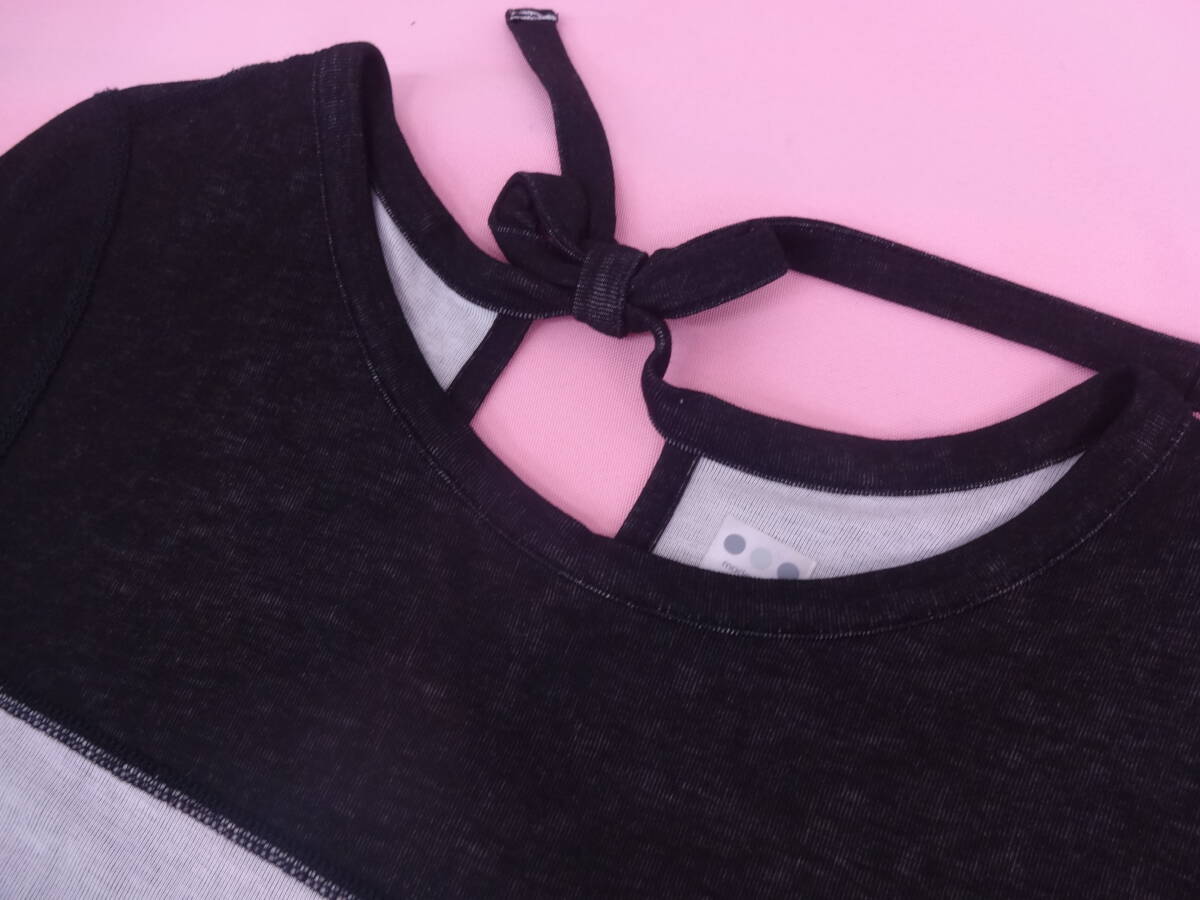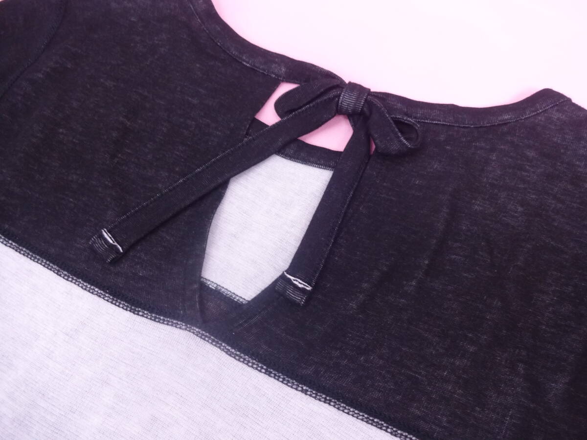ネック後ろはバックリボンになっており、さりげなくアクセントになっております。