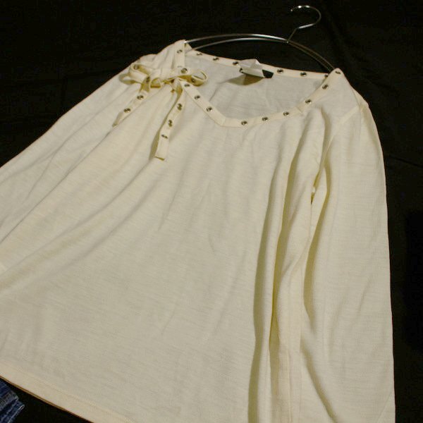 美品 オンワード樫山 iCB アイシービー ウール100% 薄手ストレッチ ニット カットソー L 春 秋 25A02