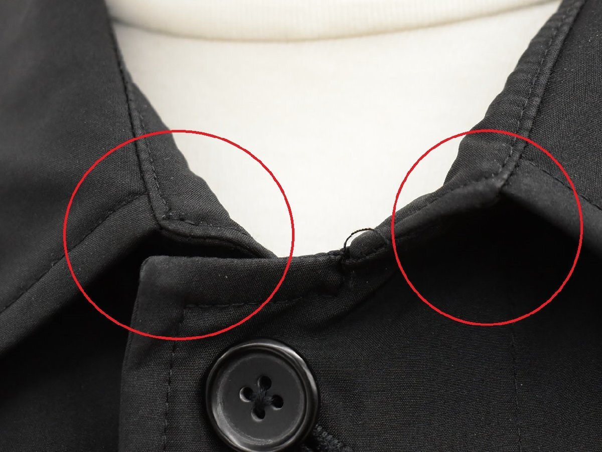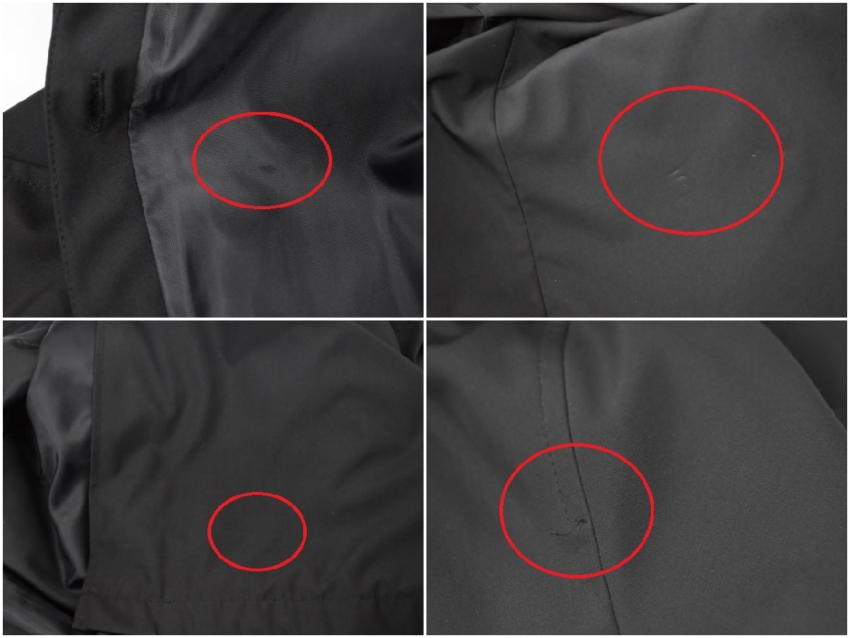 左袖の付け根に糸の飛び出し、両肩に汚れ、左背面の下部や袖、裾、襟周辺等にスレがあります。